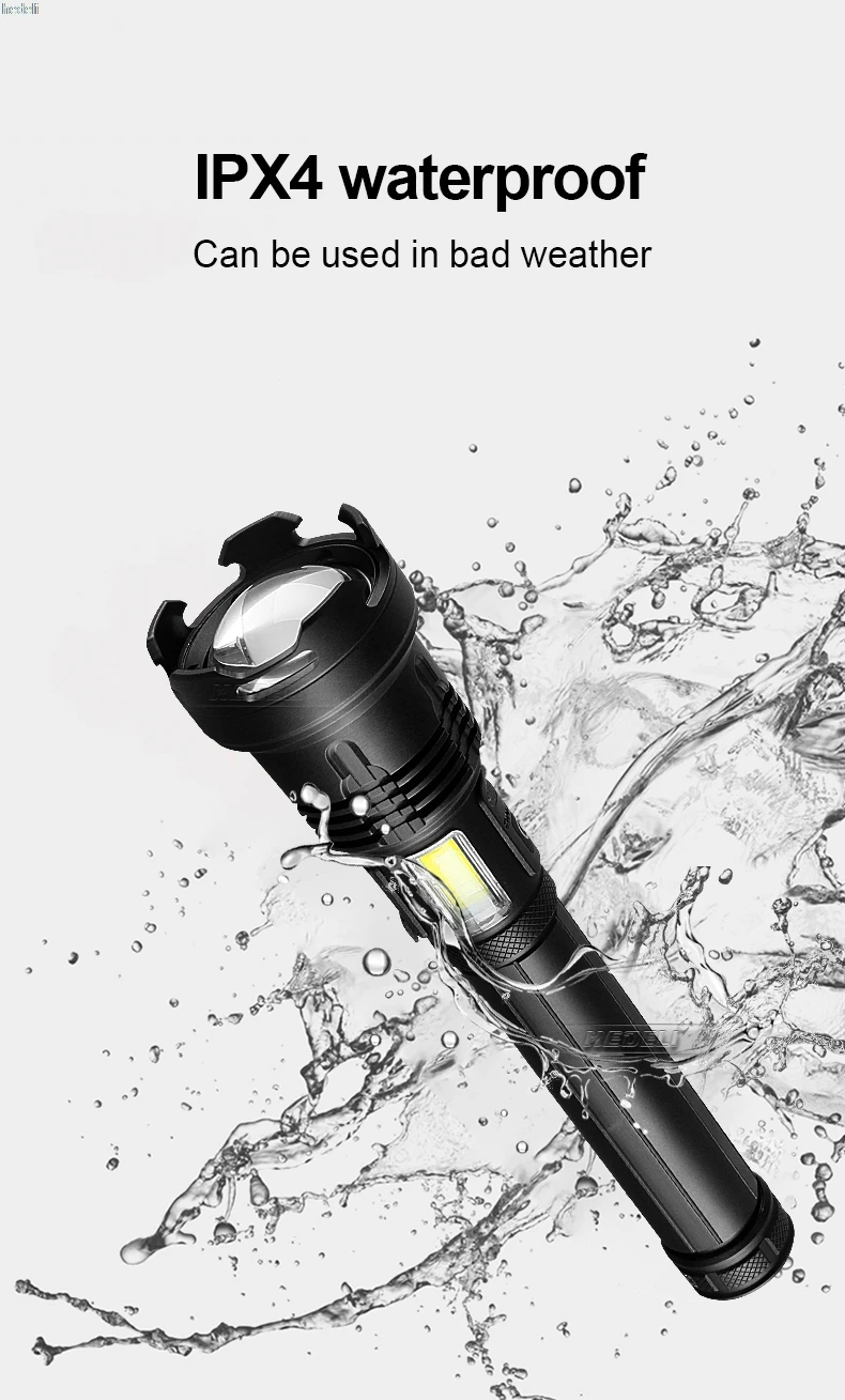 Бренд: HEDELIМодель: тактисветодиодный + COBИсточник светильник: XHP160 + COBРежим переключения: 100% → 50% →вспышкаCOB: 100% → 50% →светильник индикатор →красный индикатор мигаетЦвет: черныйРазмер: 26,5*6*3,5 смИсточник питания: 2*18650 батареи или 2*26650 батареиВремя освещения: 4-8 часовСпособ зарядки: зарядка через Micro USBМетод масштабирования: телефото зумКласс водонепроницаемости: IPX-4Материал: авиационный алюминиевый сплав▶Примечание: