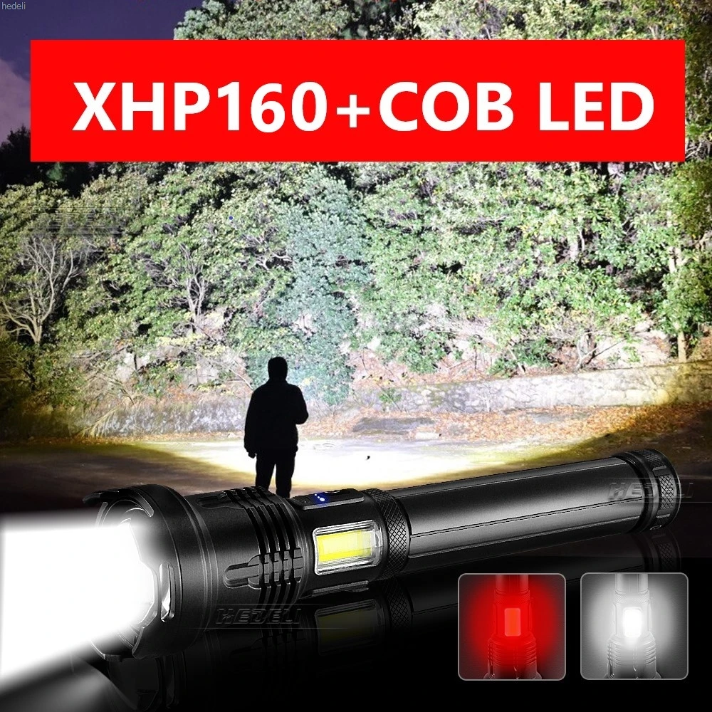 XHP160 + COB Супер Мощный тактический светодиодный фонарик USB Перезаряжаемые зум наружного освещения 18650 или 26650 кемпинг фонарь Фонари