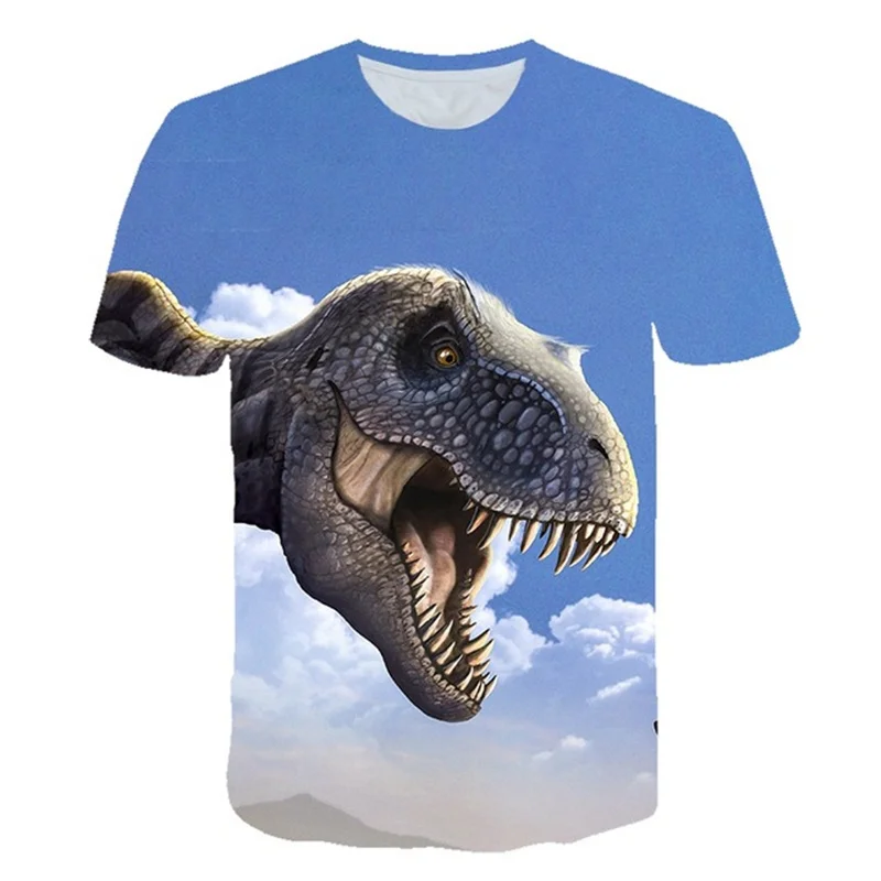 Футболка детская с круглым вырезом и коротким рукавом, брендовая Свободная Повседневная рубашка для мальчиковдевочек, с рисунком животного, динозавра, большой размер, лето