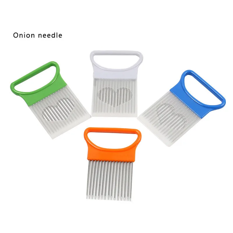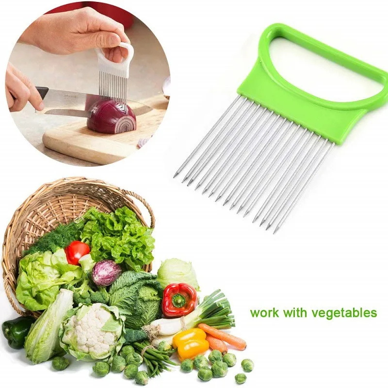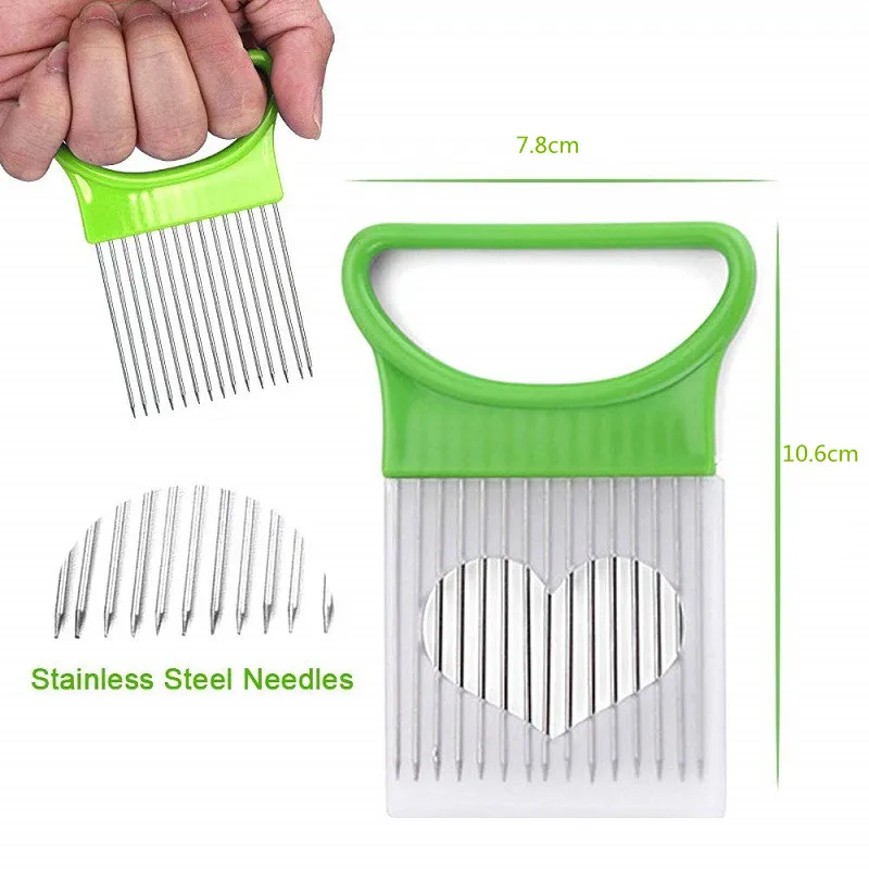 1 шт. Нержавеющаясталь резчик лука иглы томат Овощи Фрукты Slicer Ножи резки Безопасный инструмент помощи Творческий Кухня аксессуары