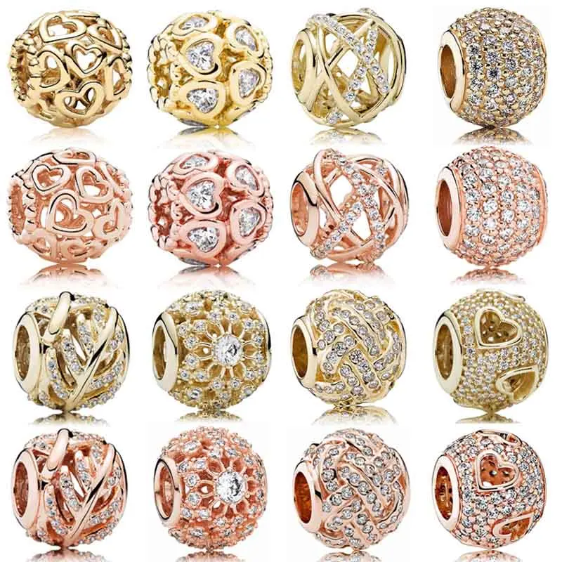 Бусины из серебра 925 пробы для браслета, с открытым сердцем
