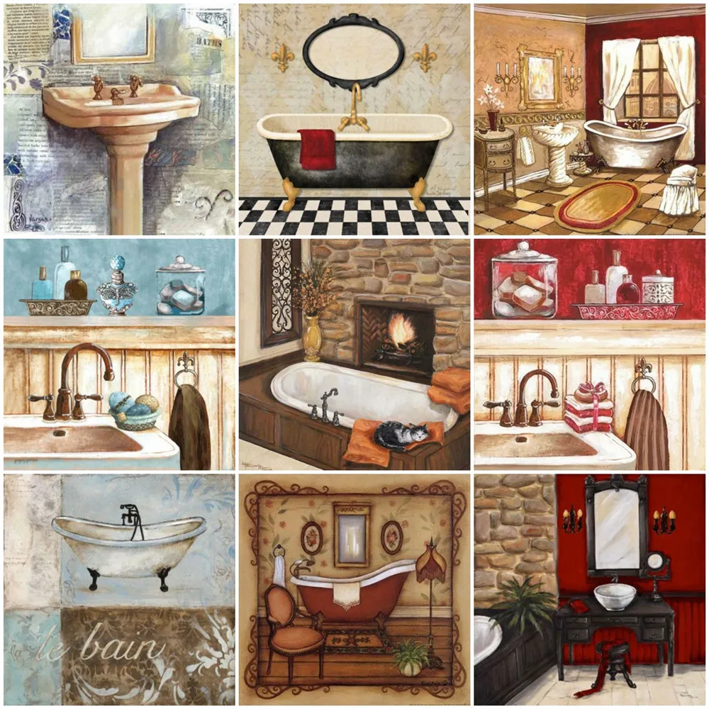 Набор для алмазной живописи, пейзаж для ванной, вышитая крестом ручная работа