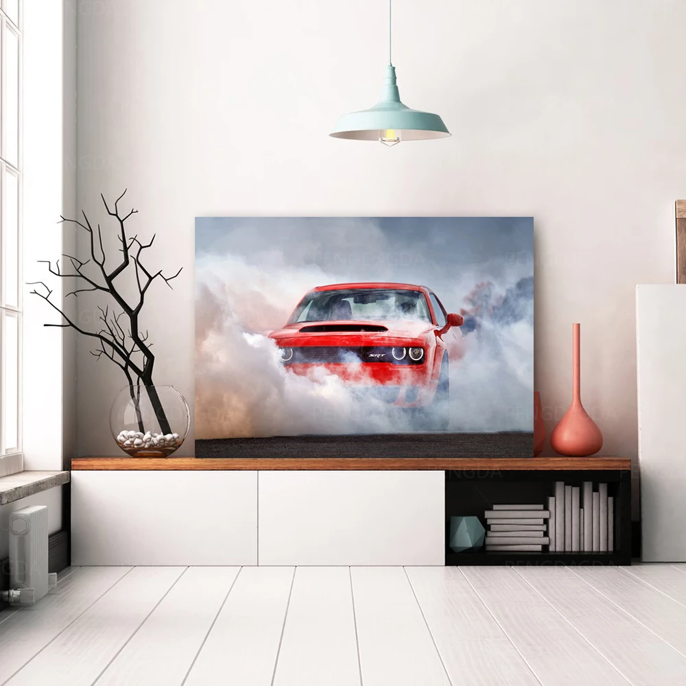 Модульная Картина на холсте HD принты туман красный бегущий автомобиль настенная живопись мечта домашний декор Плакаты для гостиной без рамки