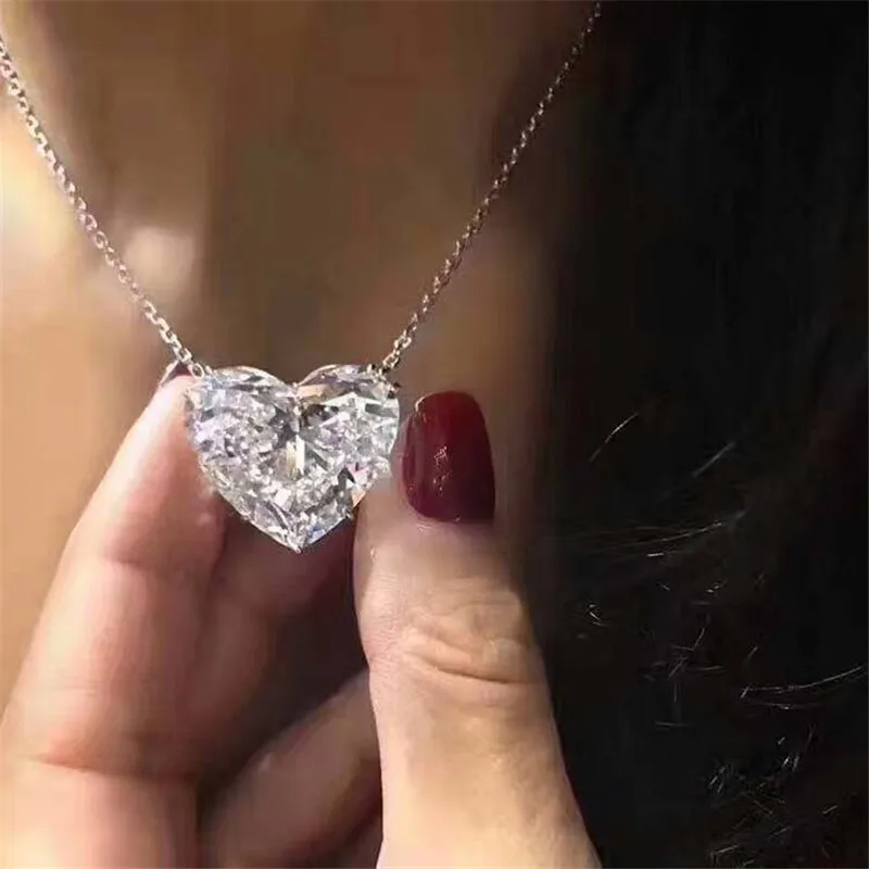 Комплект ювелирных украшений с муассанитом Женский, свадебное кольцо и ожерелье из стерлингового серебра 2021 пробы с бриллиантом 6 карат в форме сердца, ювелирные изделия для невесты