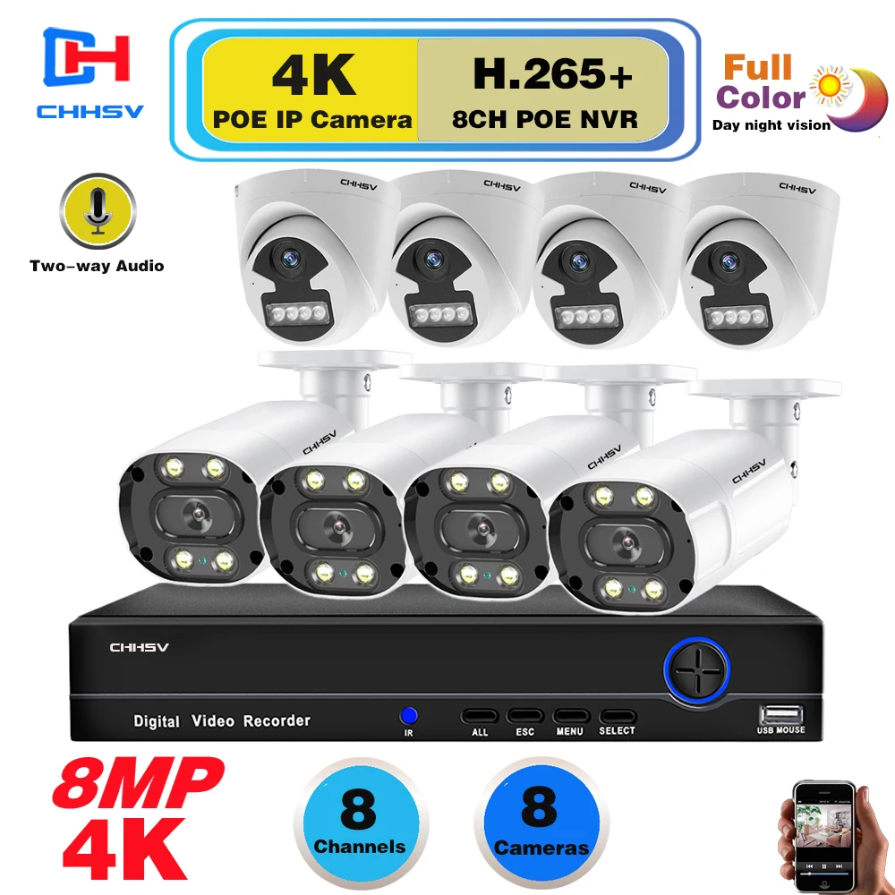 Двухсторонний аудио распознавание лица H.265 8CH 8MP POE NVR комплект CCTV система безопасности аудио AI POE IP камера наружный комплект видеонаблюдения