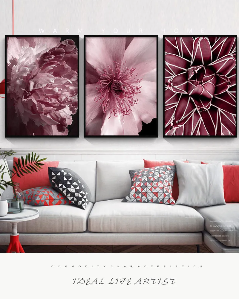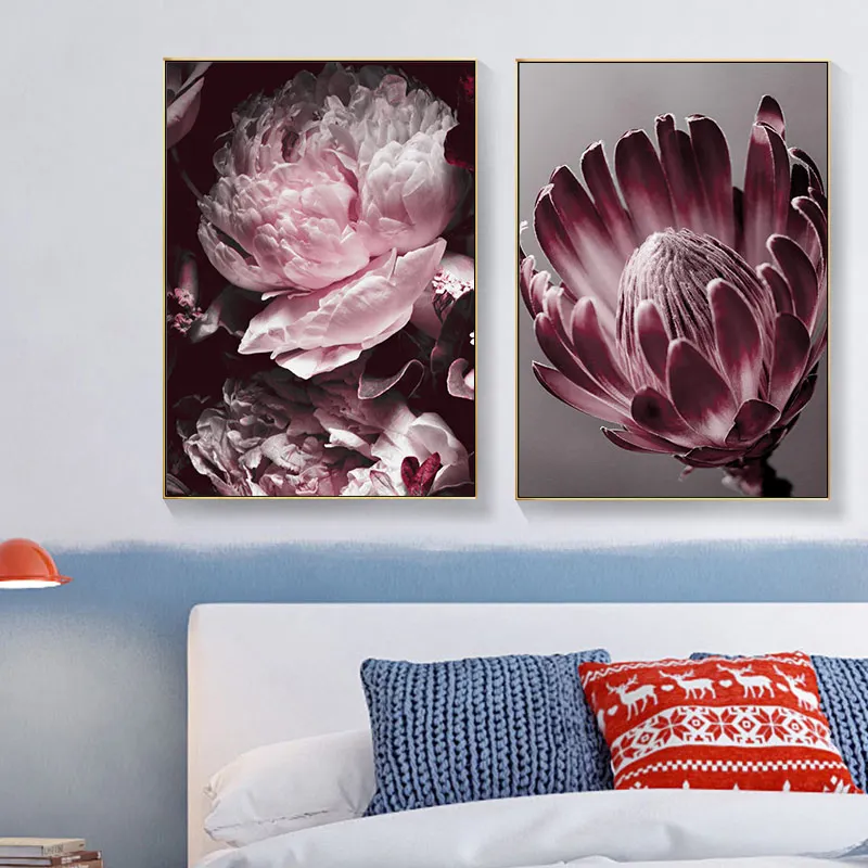 Настенная картина пиона, настенная Картина на холсте в скандинавско...