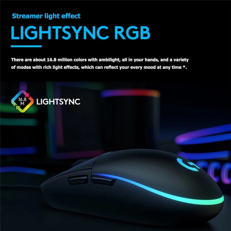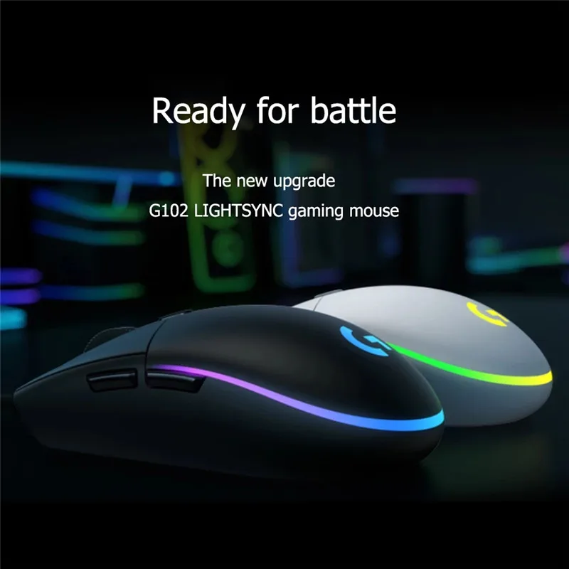 Игровая оптическая мышь Logitech G102 IC progy, 8000 точекдюйм, 16,8 м, цветная светодиодная Настройка, 6 кнопок, международная версия