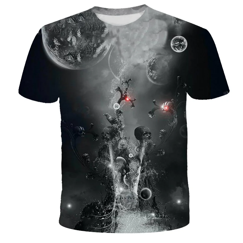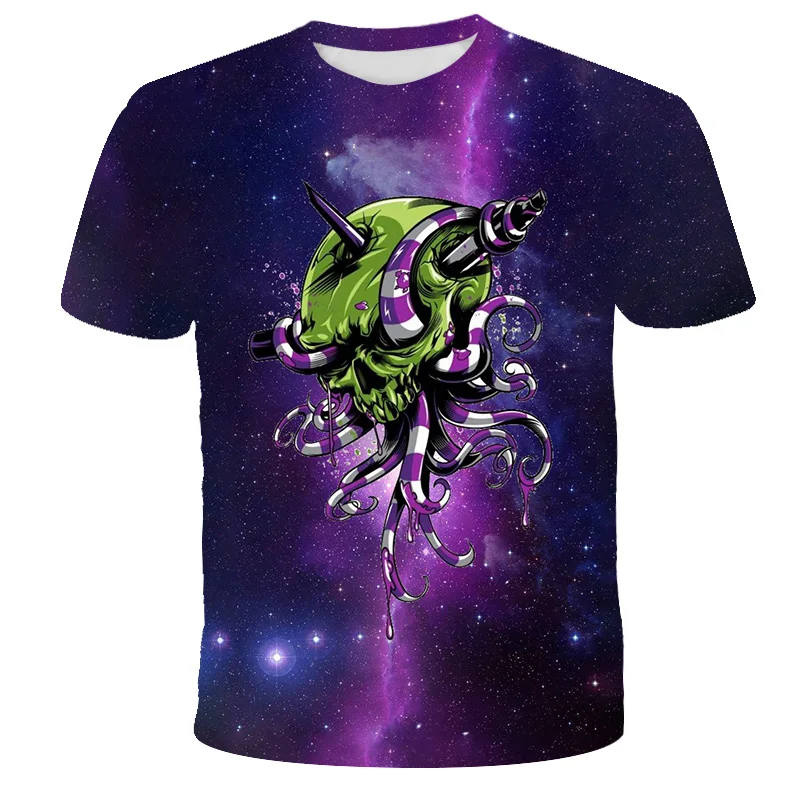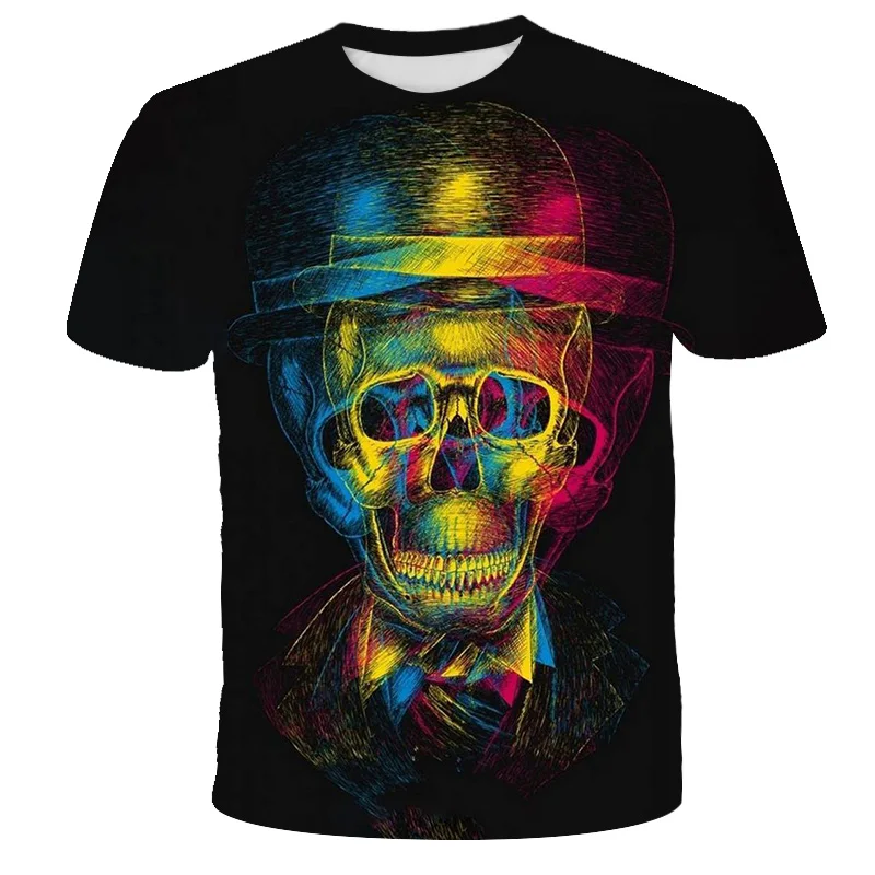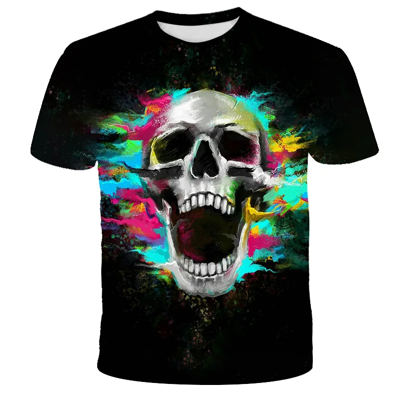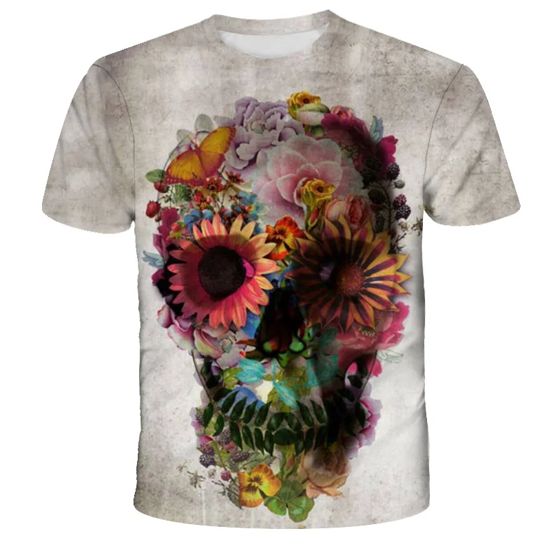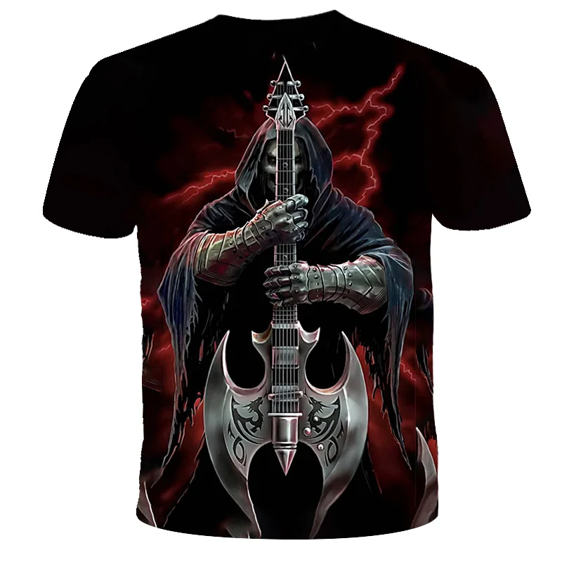 Футболка детская с 3D-принтом черепа, серпа и огня, 4-14 лет