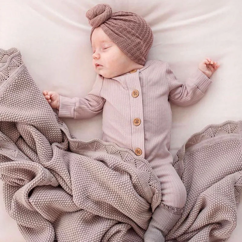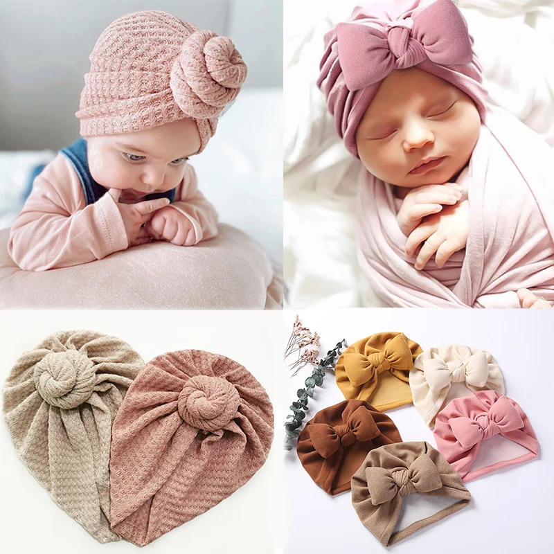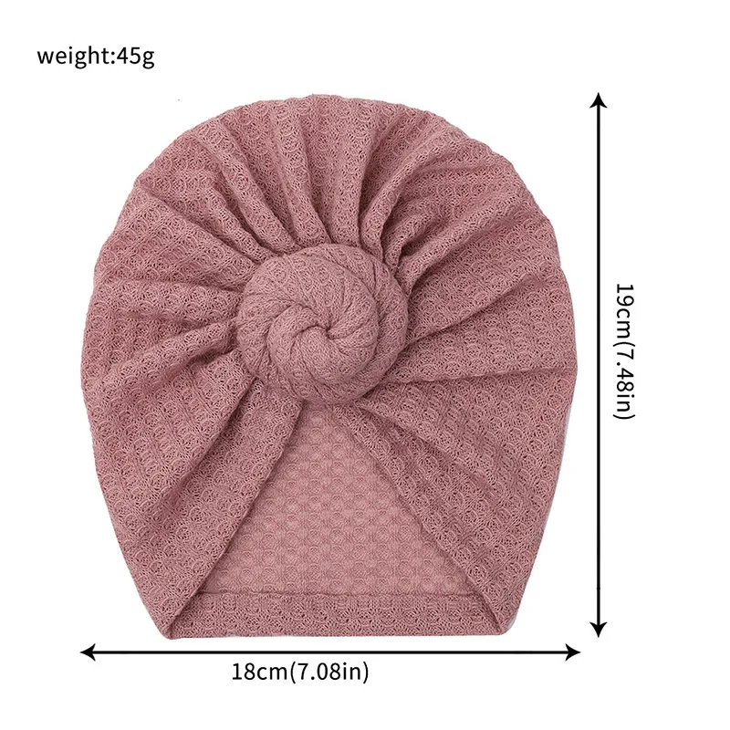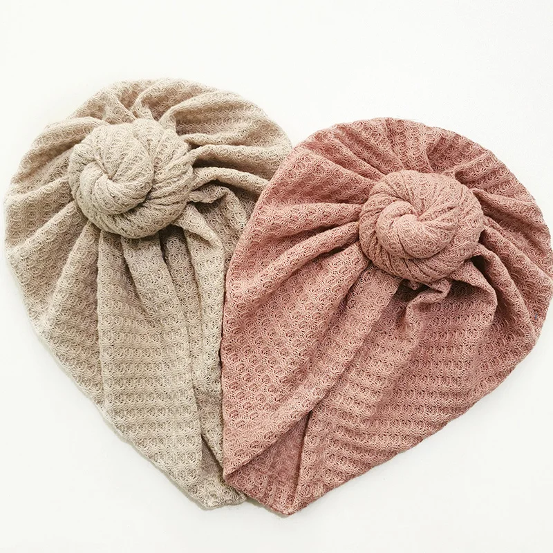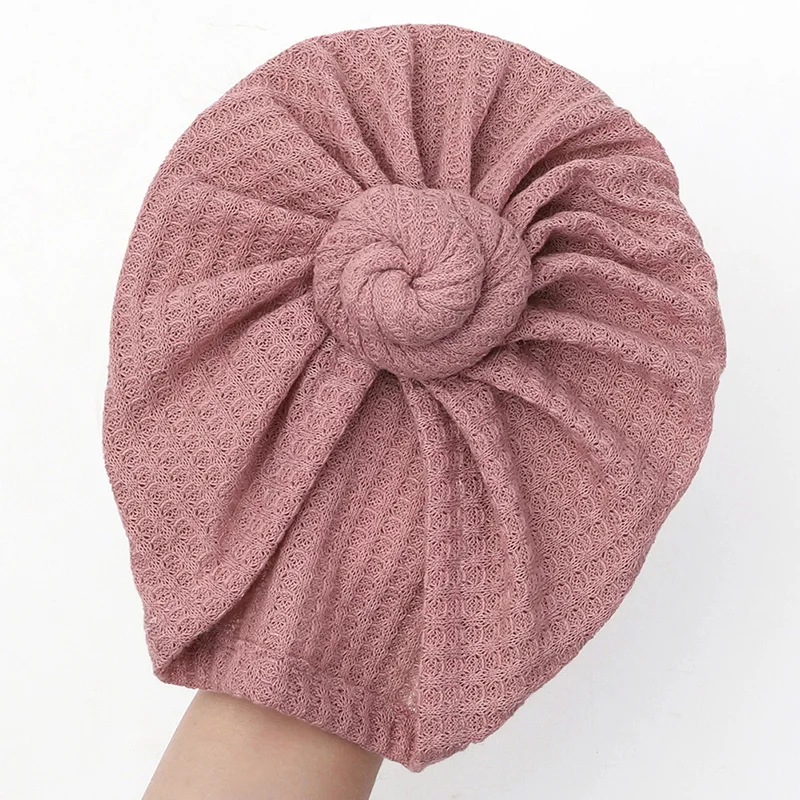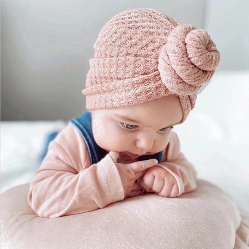 Однотонная детская Шапка-бини с узлом, вафельный детский шапка-тюрбан для девочек на весну и осень, мягкая теплая шапка для малыша, банты, шапка, головные уборы