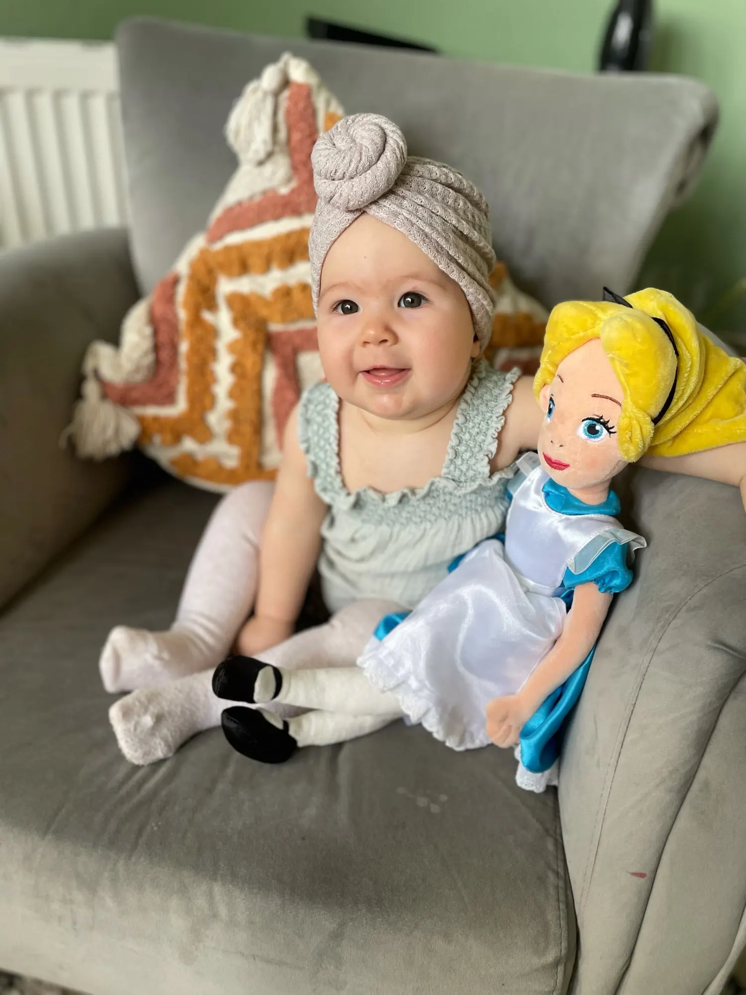 Lovely but very small. My daughter is almost 10 months and doesn’t really fit looks a bit tight but it’s cheap so would be nice for a smaller baby
