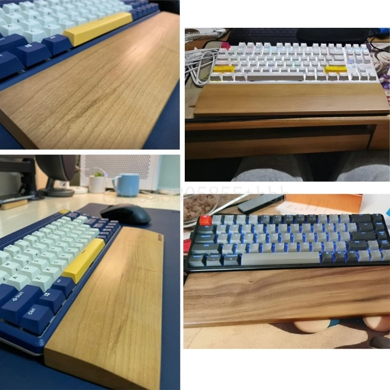 Деревянная Механическая подставка под запястье с клавиатурой из бука и противоскользящим ковриком, эргономичная настольная подставка под запястье с поддержкой 61 87 104 клавиш