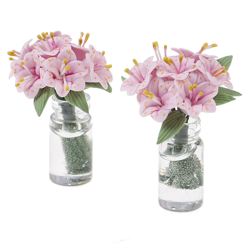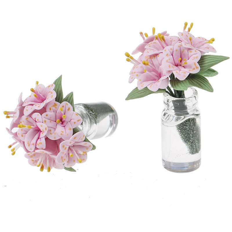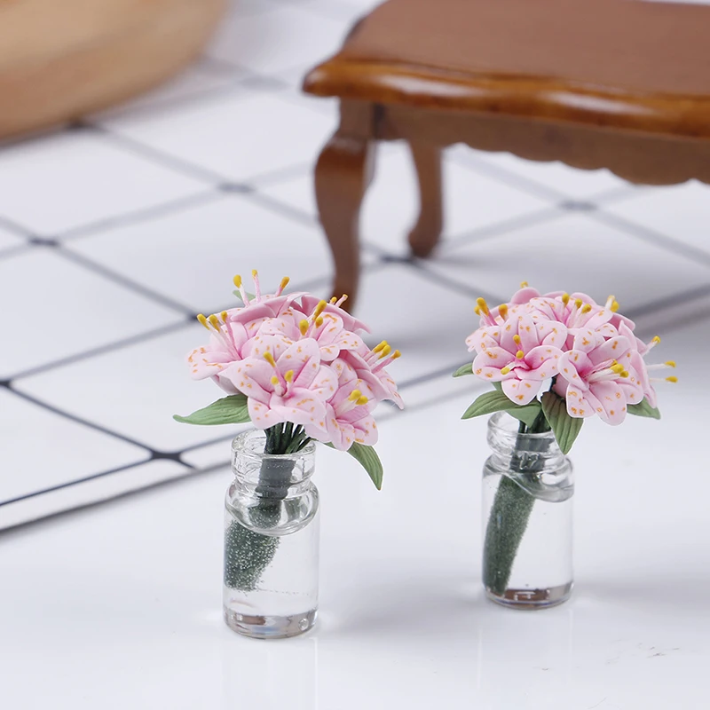 Масштаб 1:12 поддельные растения Цветочный Кукольный дом игрушка Лили Стекло бутылка Цветочная композиция кукольная мебель Миниатюрные аксессуары