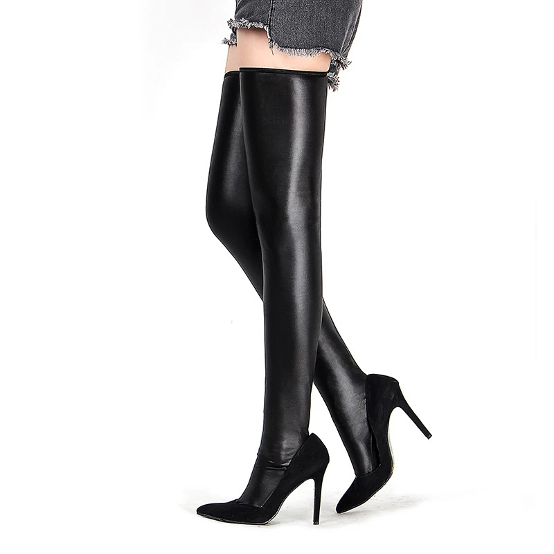 Латексные чулки с молнией сзади, черные Клубная Одежда для танцев на пилоне из ПВХ кожи, женские чулки до бедра большого размера с силиконовыми вставками