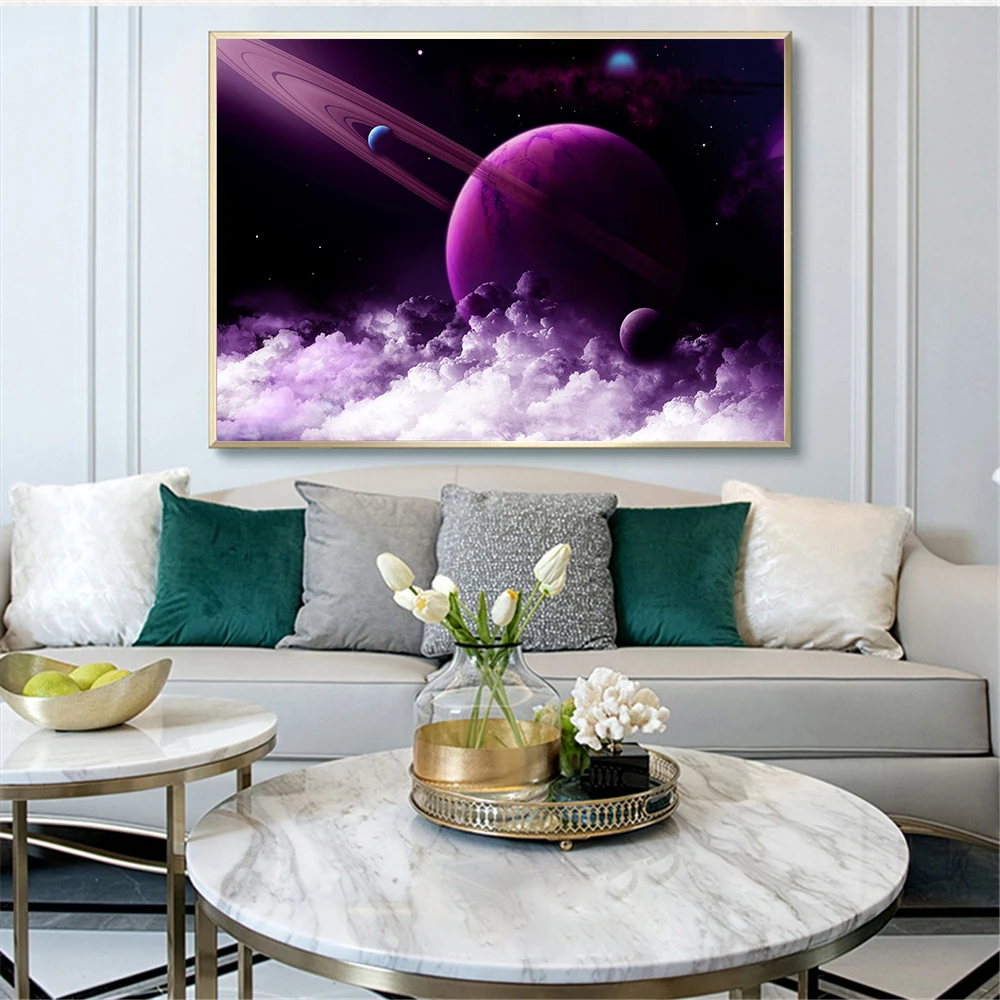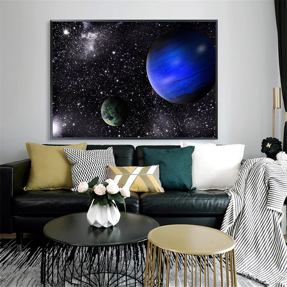 Постер с космосом и луной, Раскрашивание на холсте, Раскрашивание н...