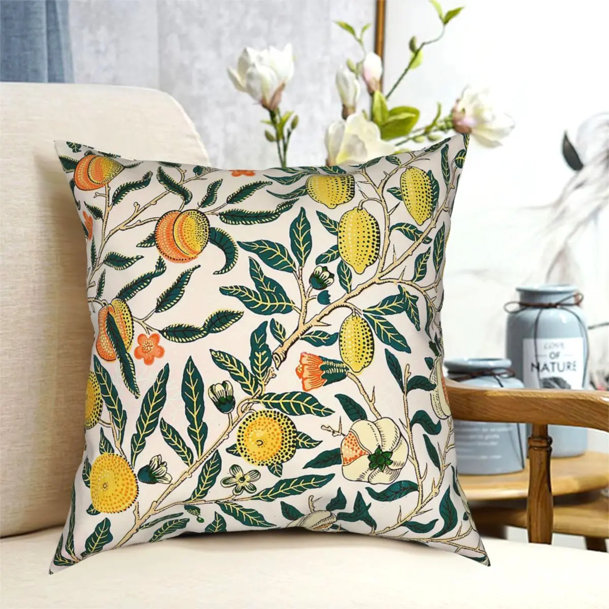 Наволочка с принтом фруктов, граната, Уильяма Морриса, домашняя декоративная винтажная наволочка с цветочным рисунком, декоративная подушка для дивана, идея для подарка