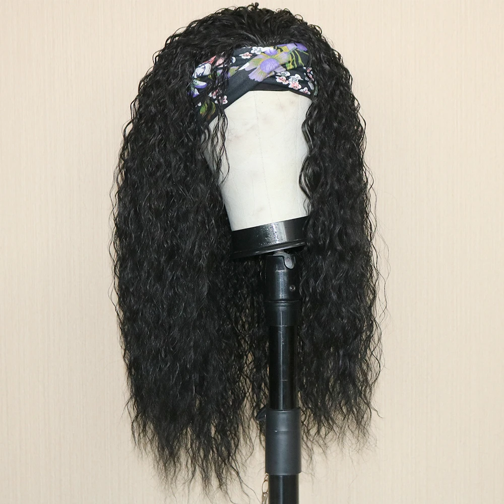 Синтетическая повязка на голову регулируемые ленты не кружевные длинные вьющиеся парики для чернокожих женщин термостойкий фиберный влажный кудрявый не гелевый легко носить