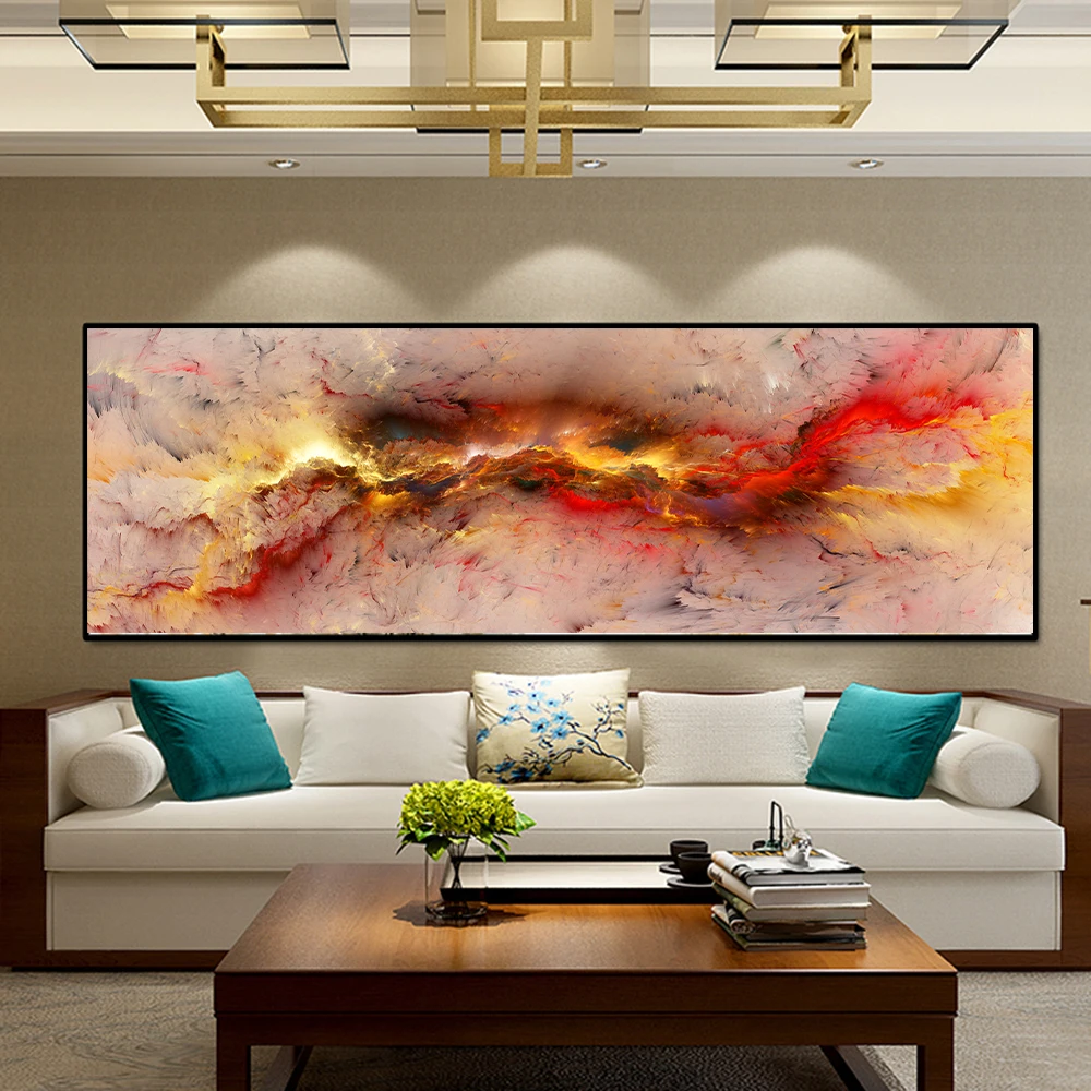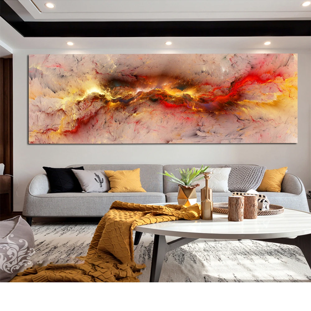 DDHH большая светильник-серая желтая абстрактная Красочная картина маслом с облаками пейзаж Картина на холсте настенное искусство для гостиной домашний декор