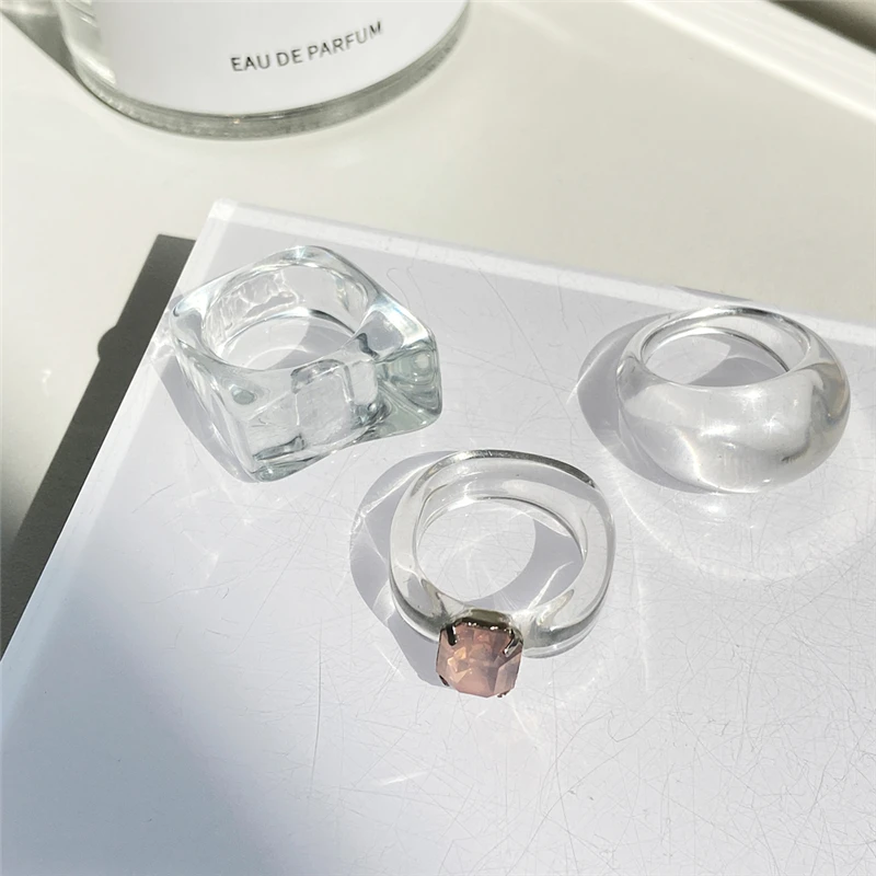 Кольцо женское акриловое, прозрачное, квадратное, круглое, 17 км, кольца оригинальной формы