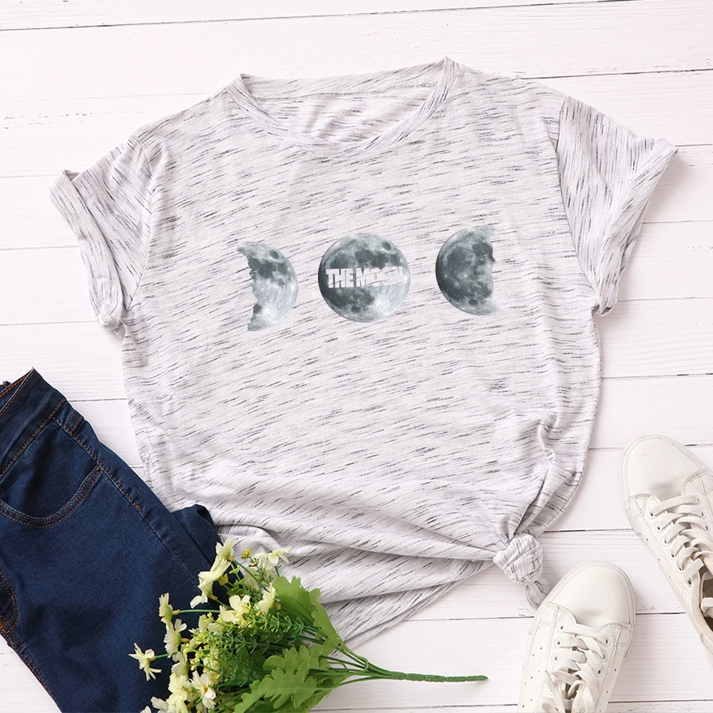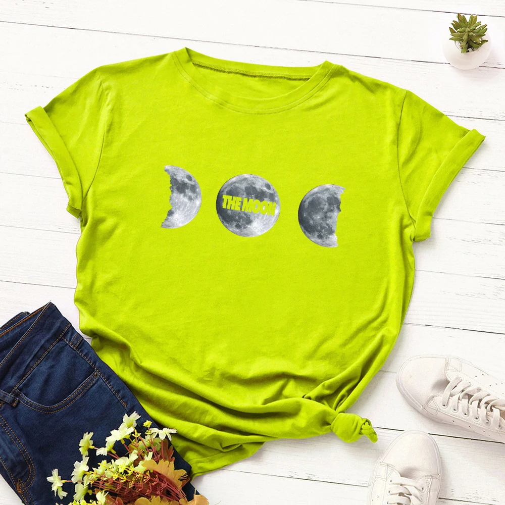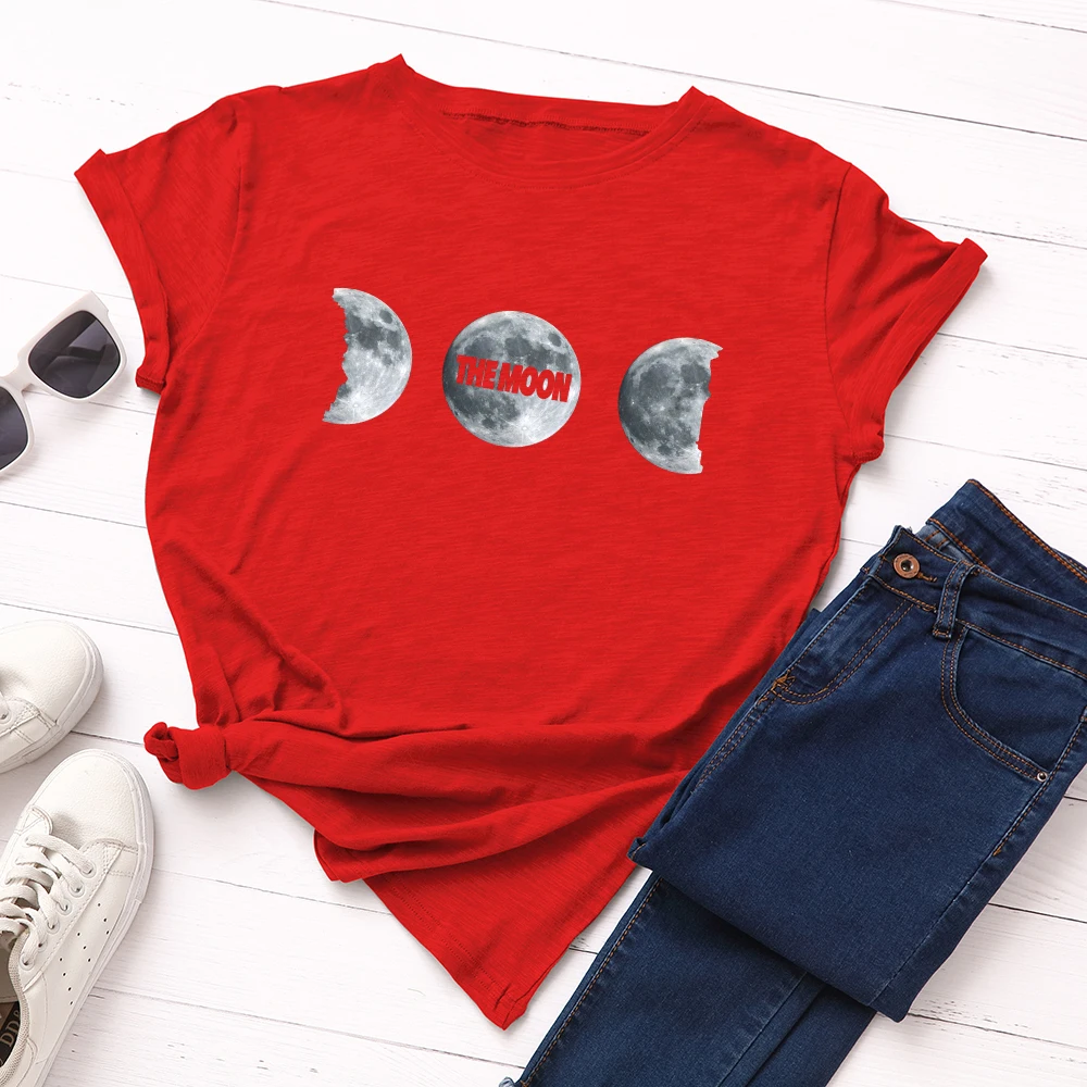 Женские хлопковые футболки с коротким рукавом, летние футболки с графическим рисунком, женские повседневные футболки большого размера, одежда с принтом Луны