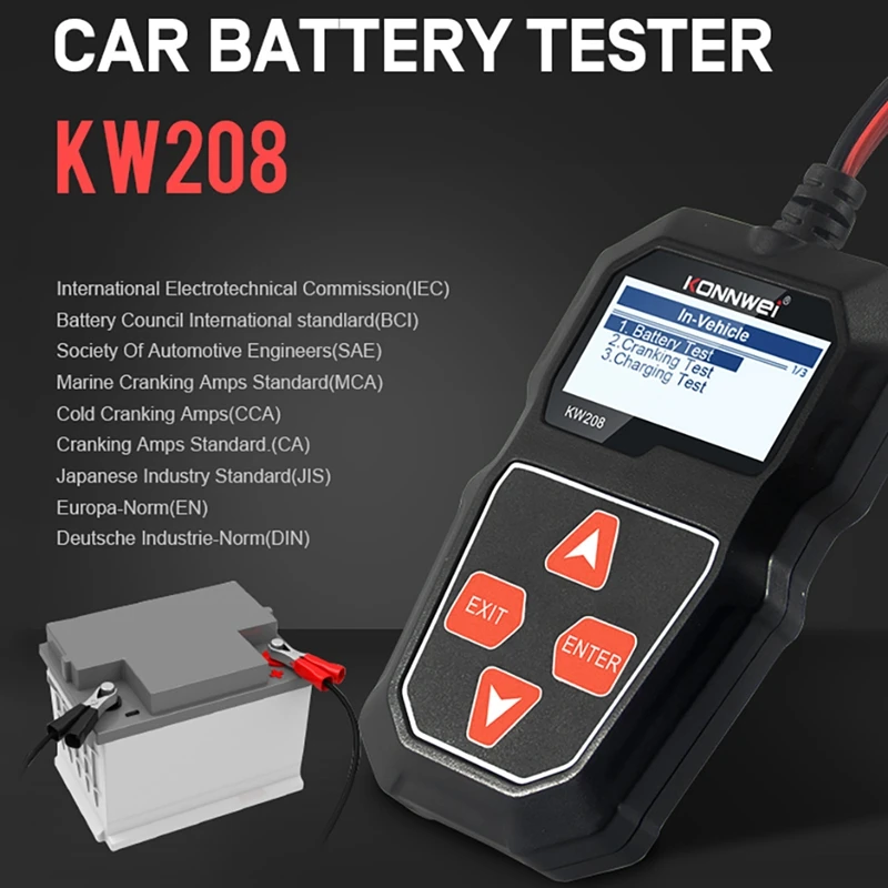 Автомобильный тестер аккумулятора KONNWEI KW208, 12 В, 100-2000CCA