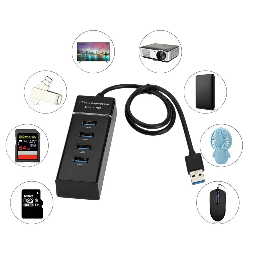 1 шт., 4 порта USB 2,0 3,0, разветвитель, высокоскоростной разветви...