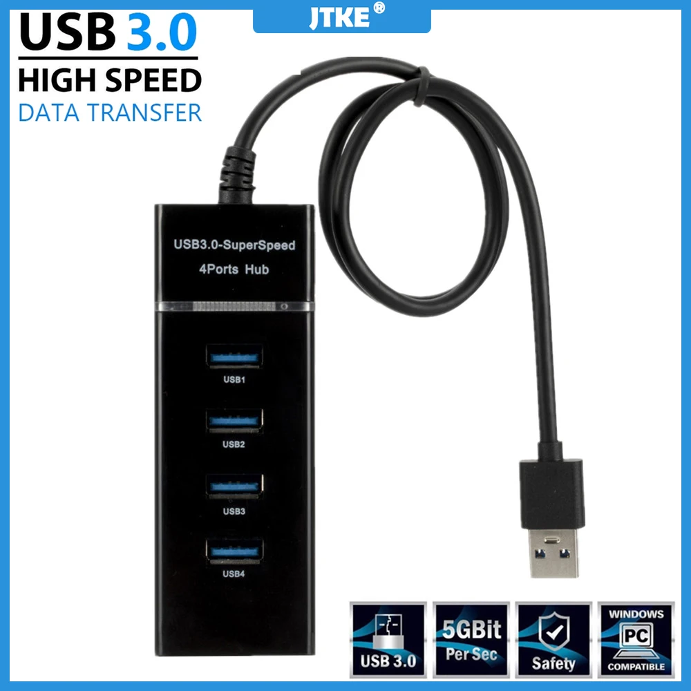 Высокоскоростной разветвитель JTKE, 4 порта USB 3,0, для настольных ПК и ноутбуков