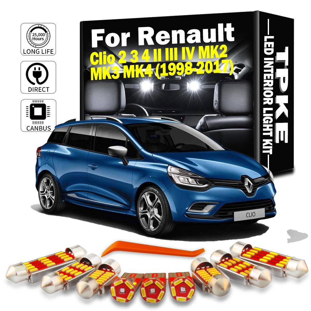 TPKE Canbus Белый безотказный светодиодный внутренний купол светильник ПА для чтения Комплект для Renault Clio 2 3 4 II III IV MK2 MK3 MK4 (1998-2017)