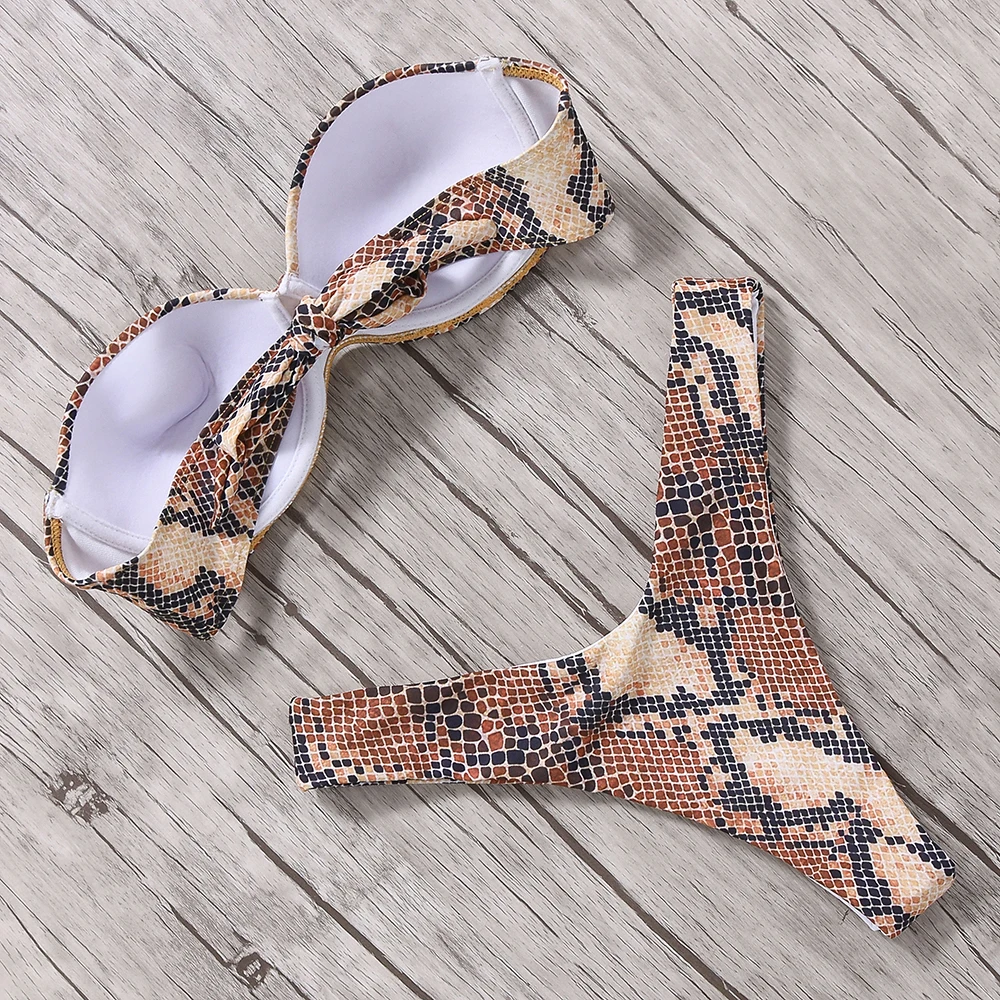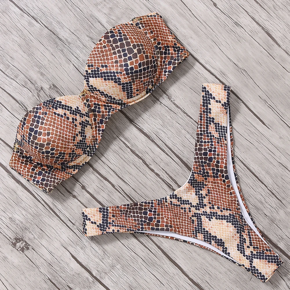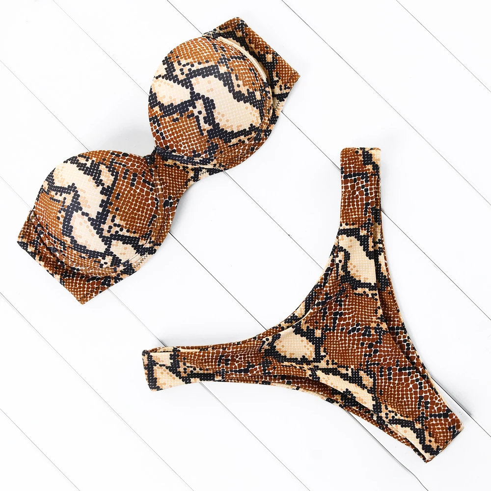 Купальник-бикини женский с чашками пуш-ап, Бразильский купальный костюм леопардового цвета, пляжная одежда, бандо, комплект для плавания, лето 2021