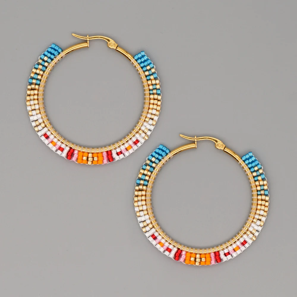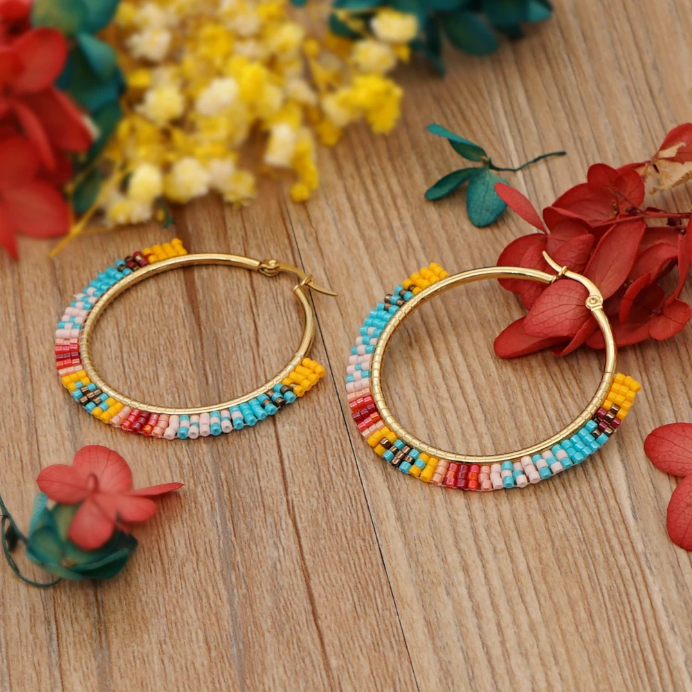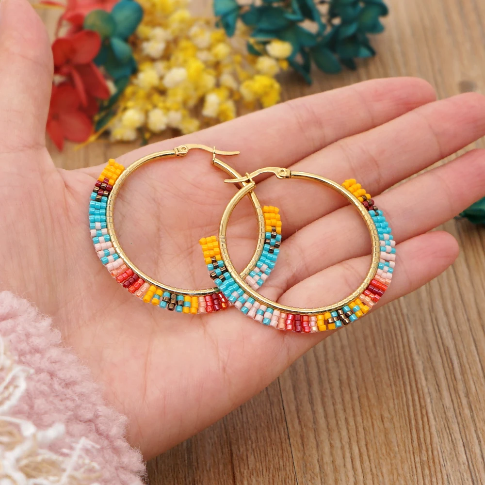 Go2Boho женские серьги-кольца в стиле бохо, серьги в этническом стиле, ювелирные изделия, бисер Miyuki, бусы, подарок для нее, нержавеющая сталь