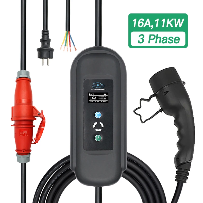 EV зарядное устройство тип 2 16 А 3 фазы 11 кВт адаптер CEE красный к Schuko с кабелем 1 м для электрического автомобиля зарядка EVSE