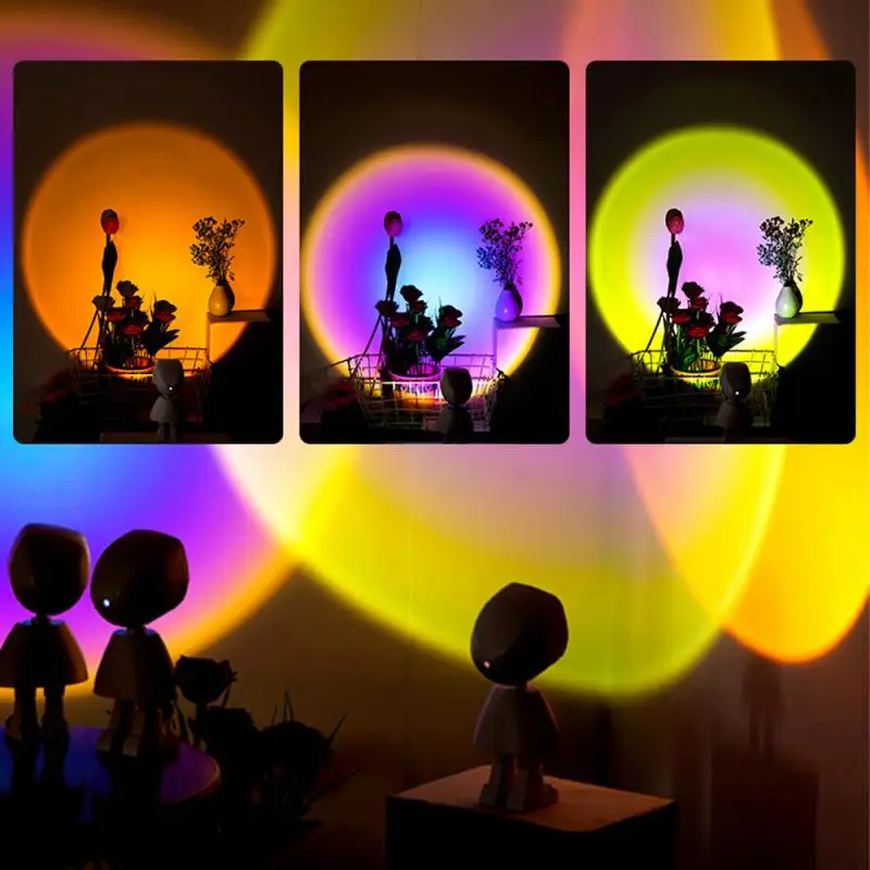 Светодиодная проекционная лампа, креативный светильник для заката робота, разноцветная настольная лампа USB радужного типа, декоративсветильник щение для атмосферы