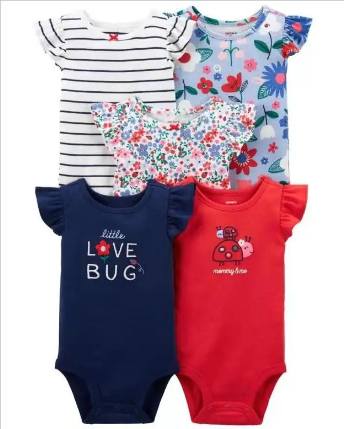 5 шт.лот, детский комбинезончик, хлопковая футболка с короткими рукавами для мальчиков Одежда для девочек; Сезон лето; Стиль Лолита; Комбинезоны; Комплект одежды; Костюмы с боди для детей от 6 до 24 месяцев Bebe костюм