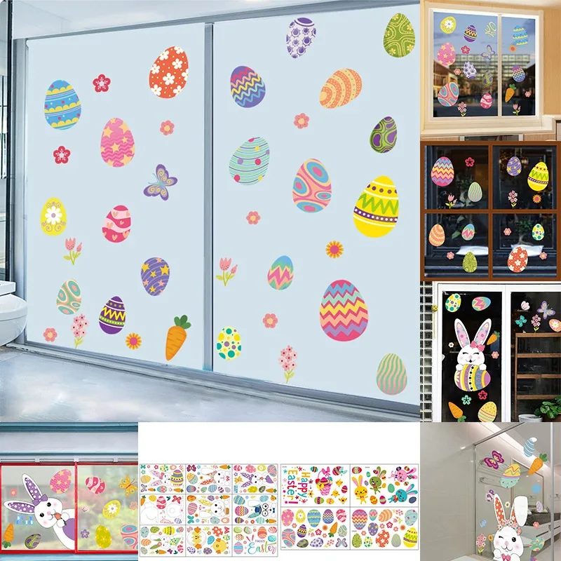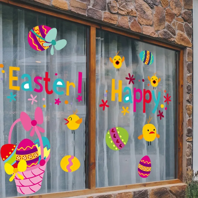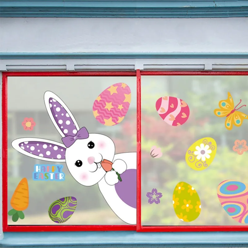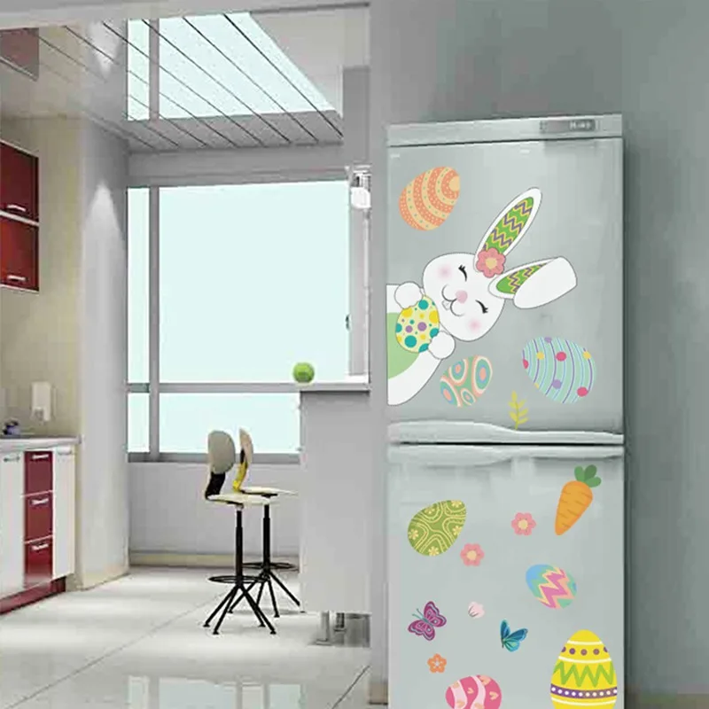 Мультяшные яйца, кролик, наклейки на стену для детской комнаты, домашнее украшение для гостиной, детской спальни, стеклянного окна магазина, наклейка сделай сам