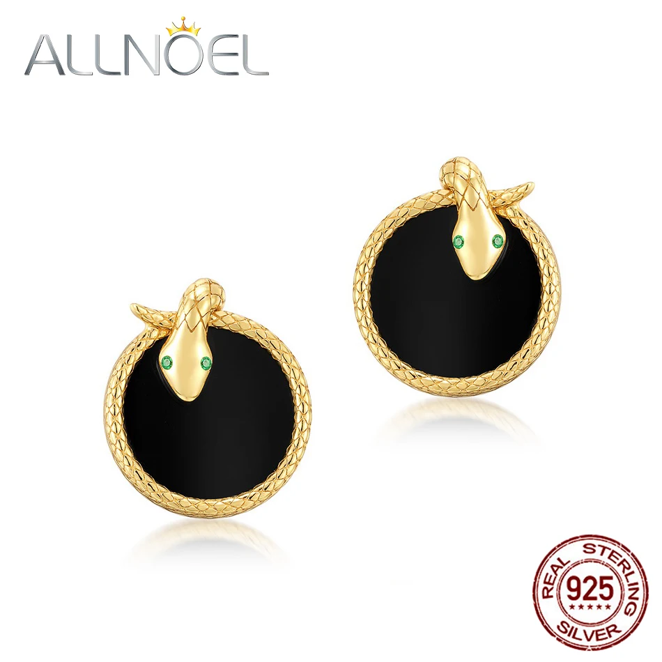 ALLNOEL однотонная серебряная серьга из стерлингового серебра 925 пробы для женщин Черная ониксовая зеленая нано-циркониевая серьга со змеями для помолвки изящные ювелирные изделия новый подарок