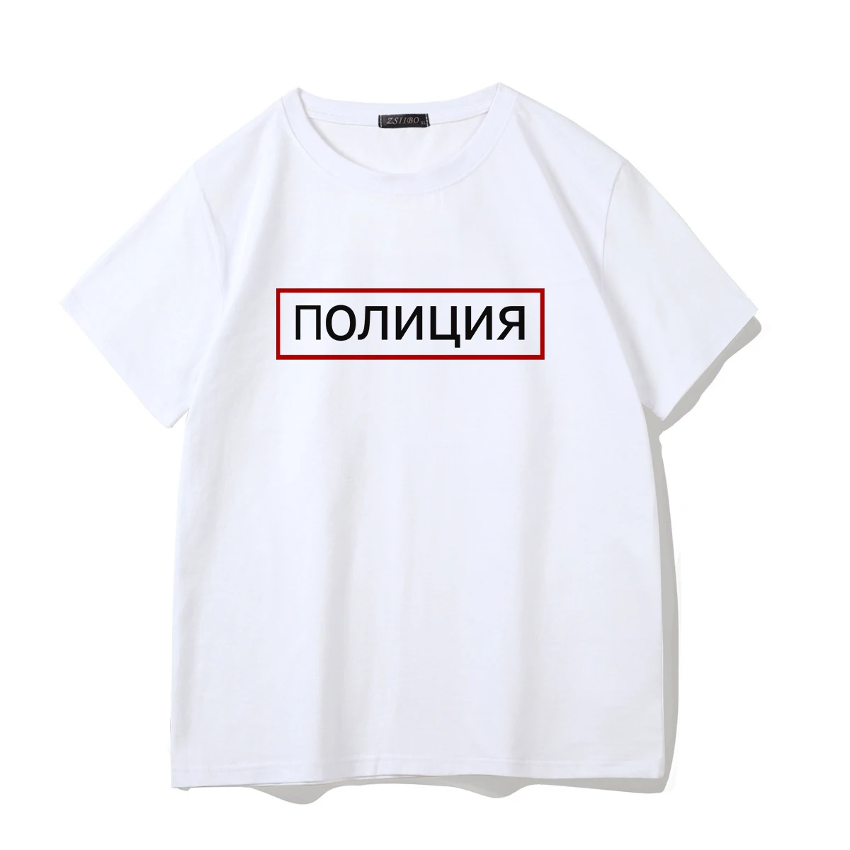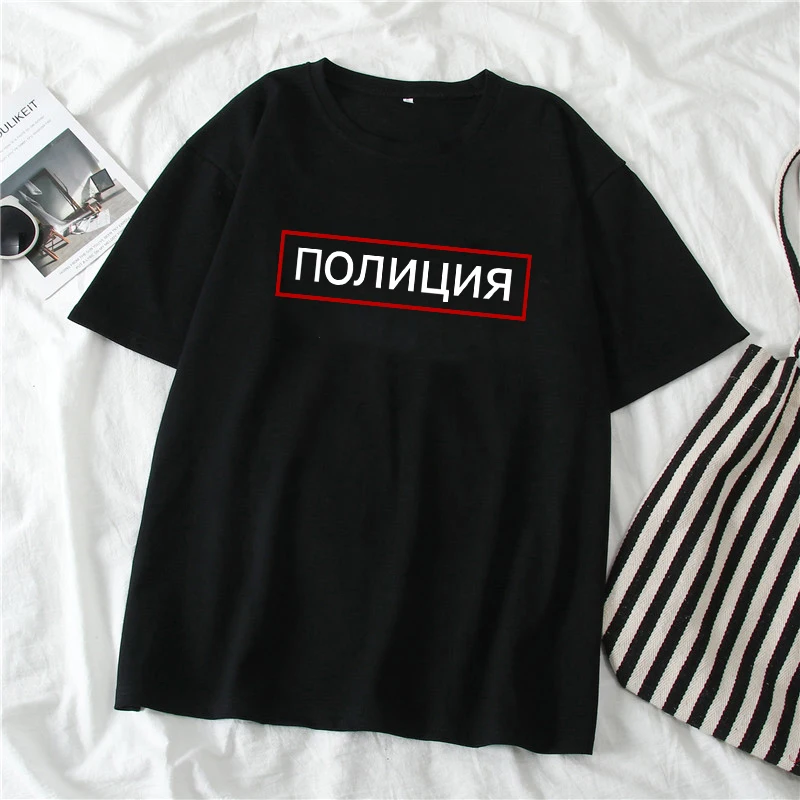 Футболка женская с надписью полиция, Повседневная винтажная свободная черная рубашка с коротким рукавом в стиле хип-хоп, стиль Харадзюку, большие размеры, 2021