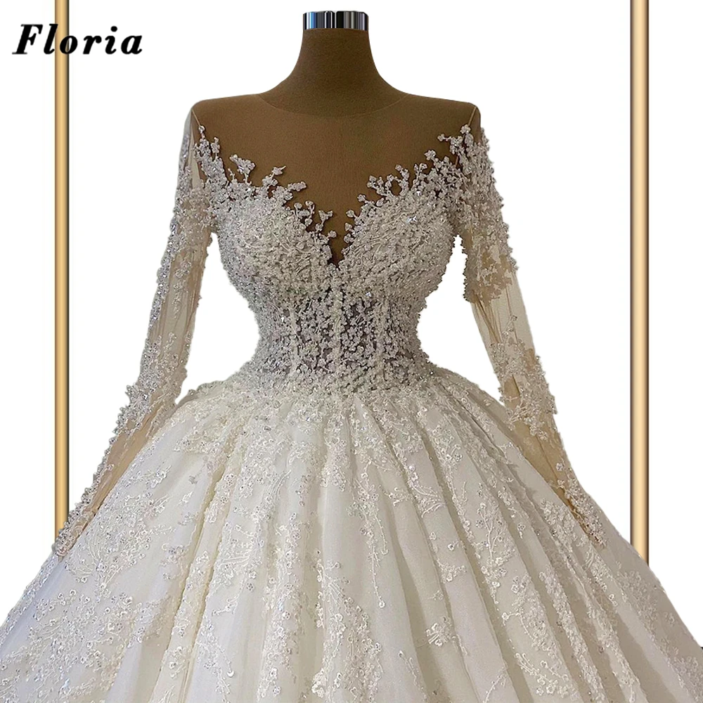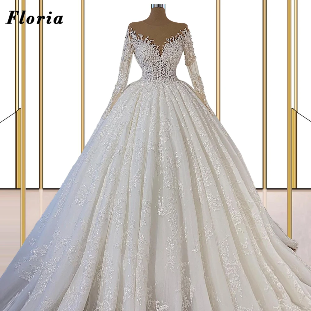 Женское свадебное платье с жемчужной аппликацией, бальное платье невесты с длинными рукавами, свадебные платья Дубая Среднего Востока, 2021