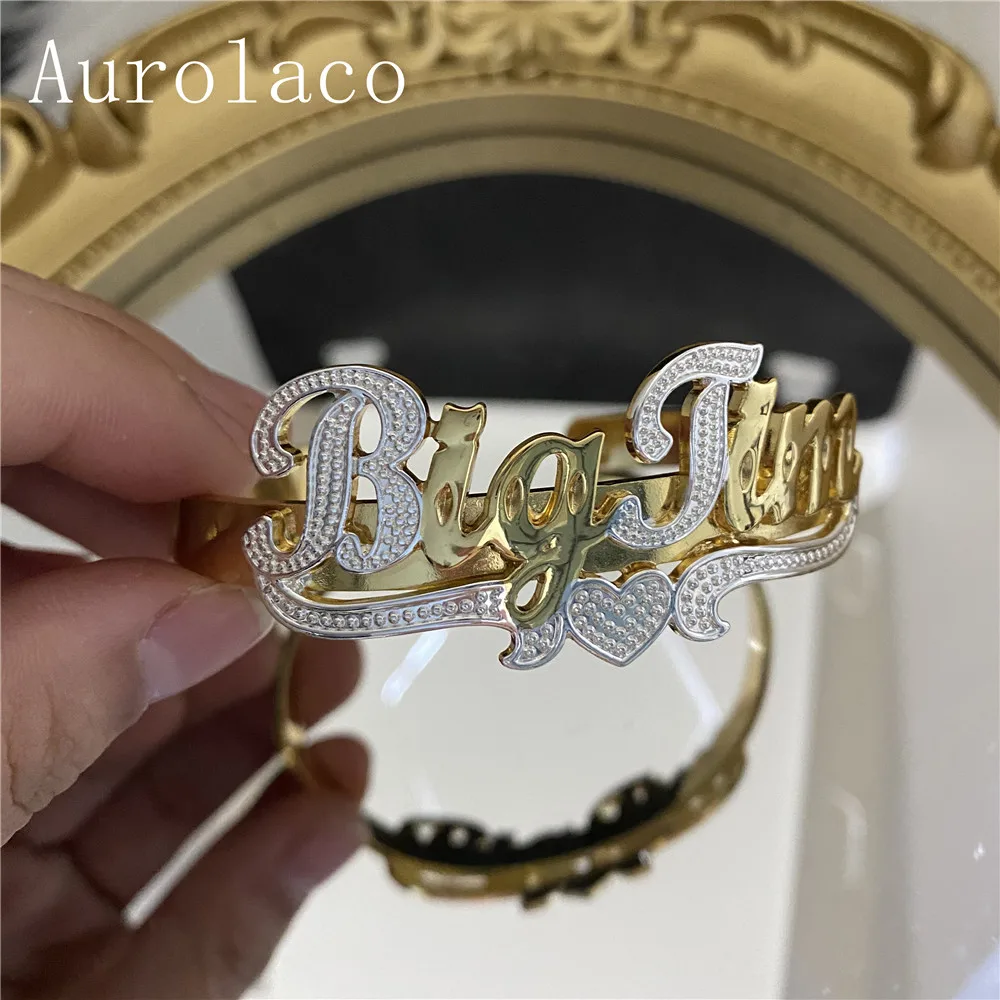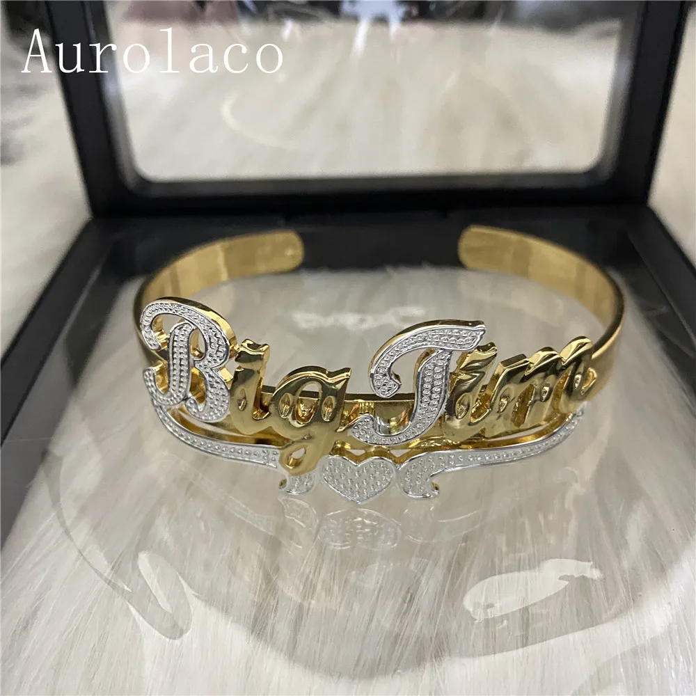 AurolaCo именной браслет с именем на заказ, браслет с позолоченной табличкой из нержавеющей стали, персонализированный браслет