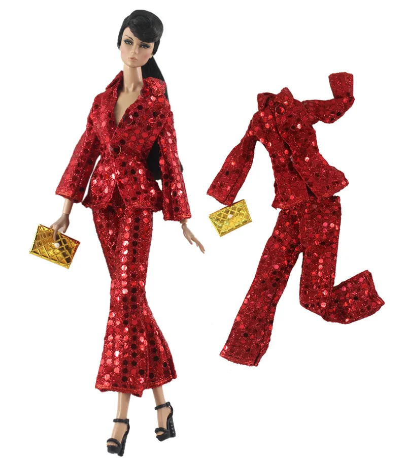 Комплект из 3 предметов для куклы NK, красное пальто + модные брюки + Повседневная сумка для куклы Барби, аксессуары для кукол, детские игрушки, подарок для девочек 3X