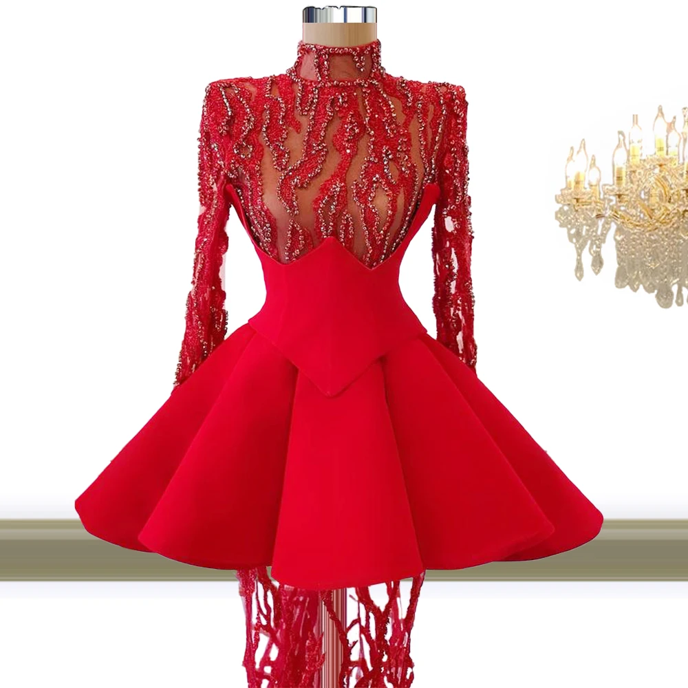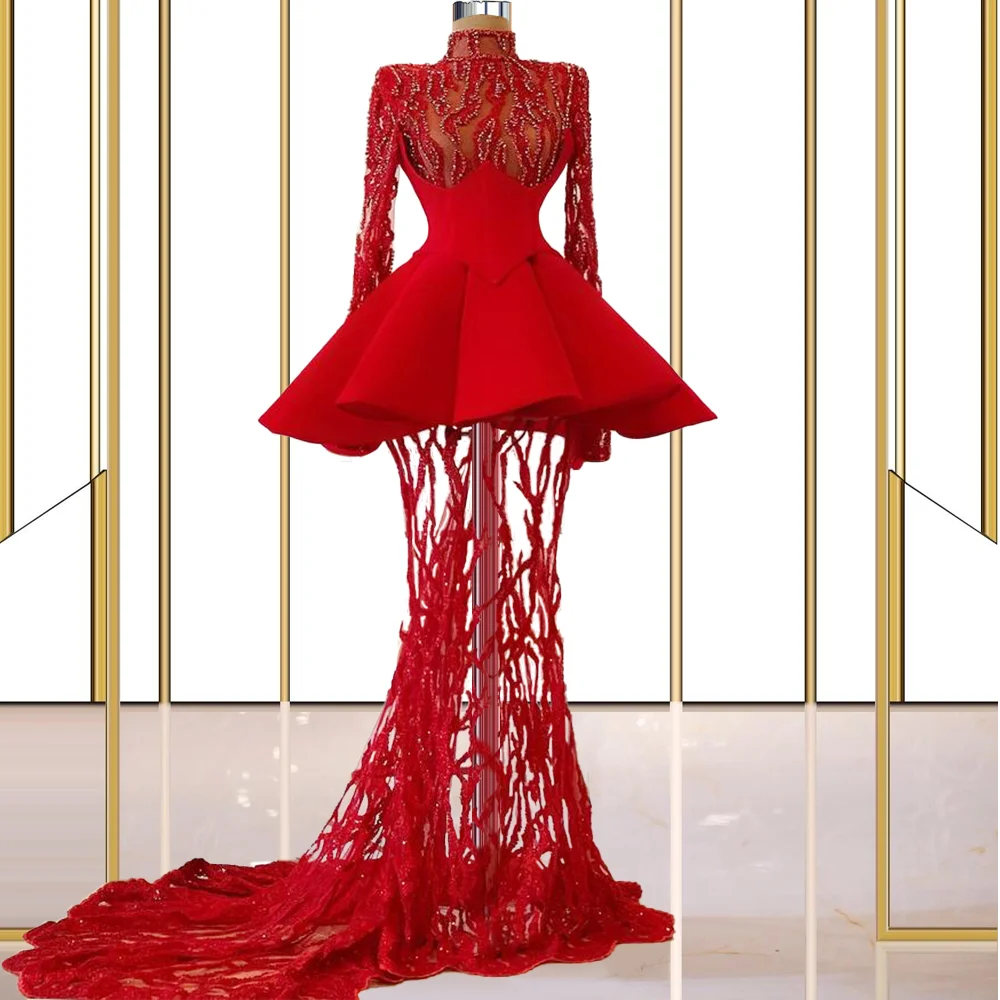 Красные женские вечерние платья для нового года, платья знаменитостей с длинным рукавом, платье для особых вечерних мероприятий