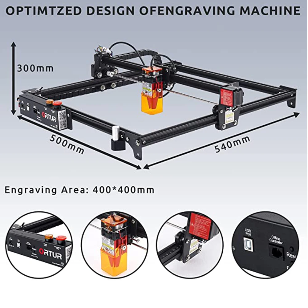 Бренд: OrturНомер модели: Laser Master 2 proТип: лазерная гравировальная машинаМатериал: алюминий + сталь с порошковым покрытиемМощность лазера: LU2-4 лазерный модуль с сжатым фокусным расстоянием 20 Вт (электрическая мощность: 20 Вт, Сила света: 5000-5500 МВт)Дальность достижения лазера: 445 ± 5 нмПитание: адаптер питания 24 В 2 А
