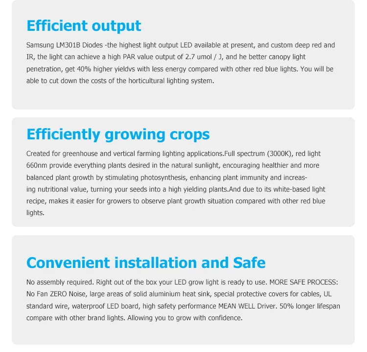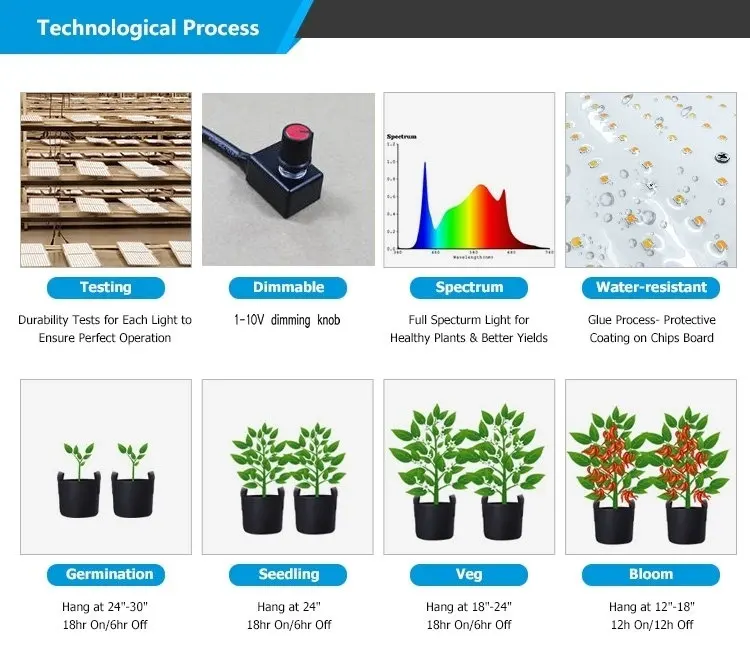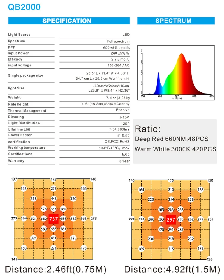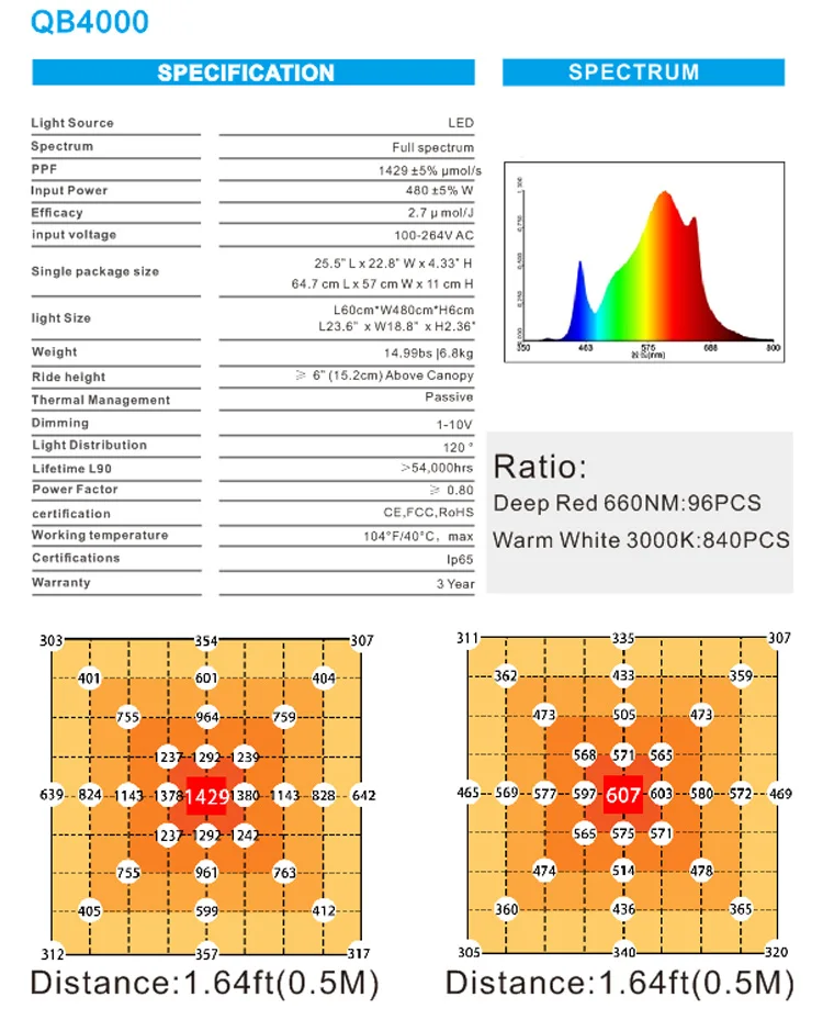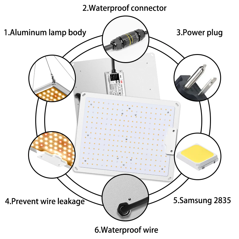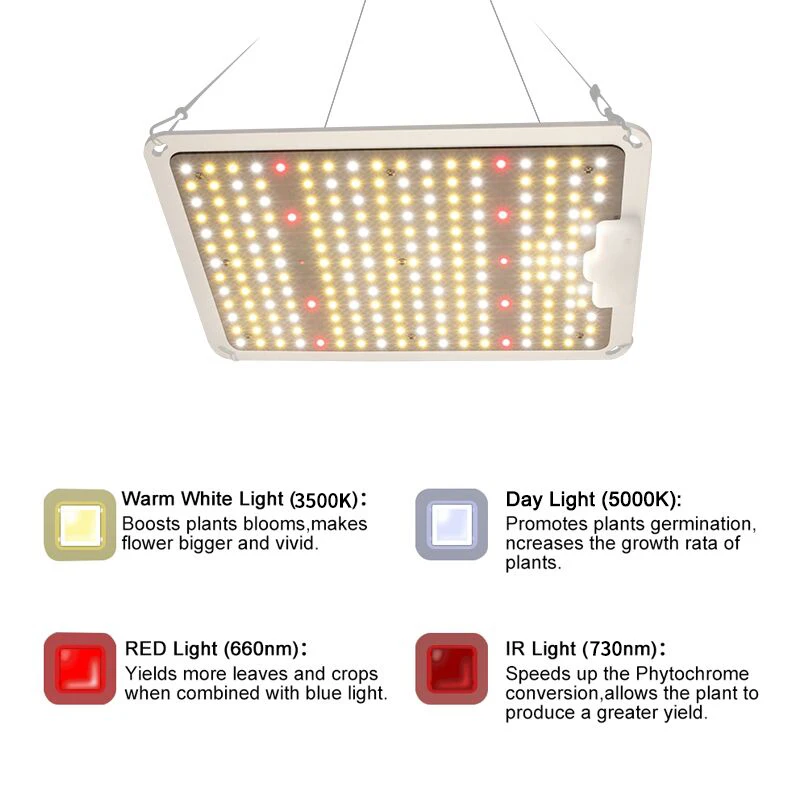 5. Полный спектр вегетативного и цветущего периода: 430 ~ 440nm, 450 ~ 475nm, 620 ~ 630nm, 650 ~ 670nm, белый, IR (730nm)