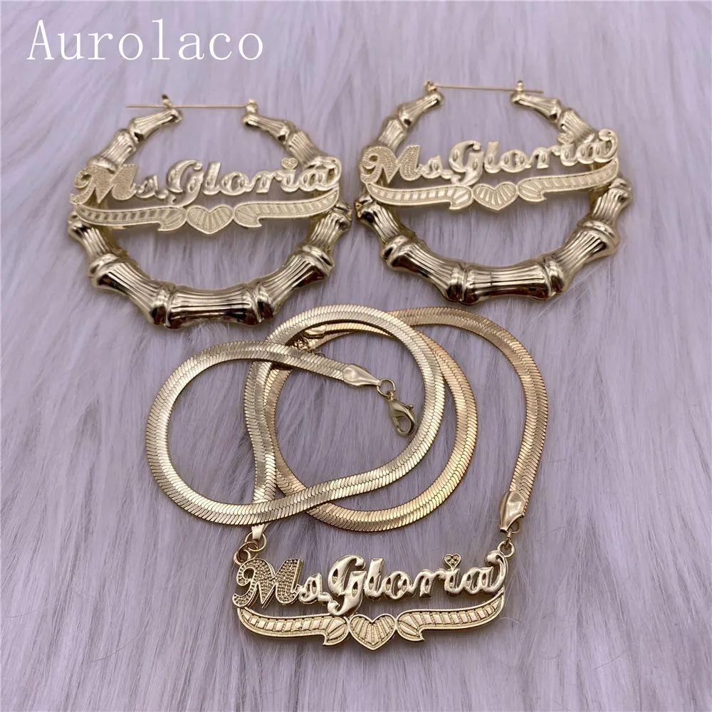 Набор ювелирных изделий AurolaCo с именем на заказ, ожерелье с двойной именной табличкой, цепочка в виде змеи, серьги с именем на заказ для женщин, праздничные подарки, оптовая продажа