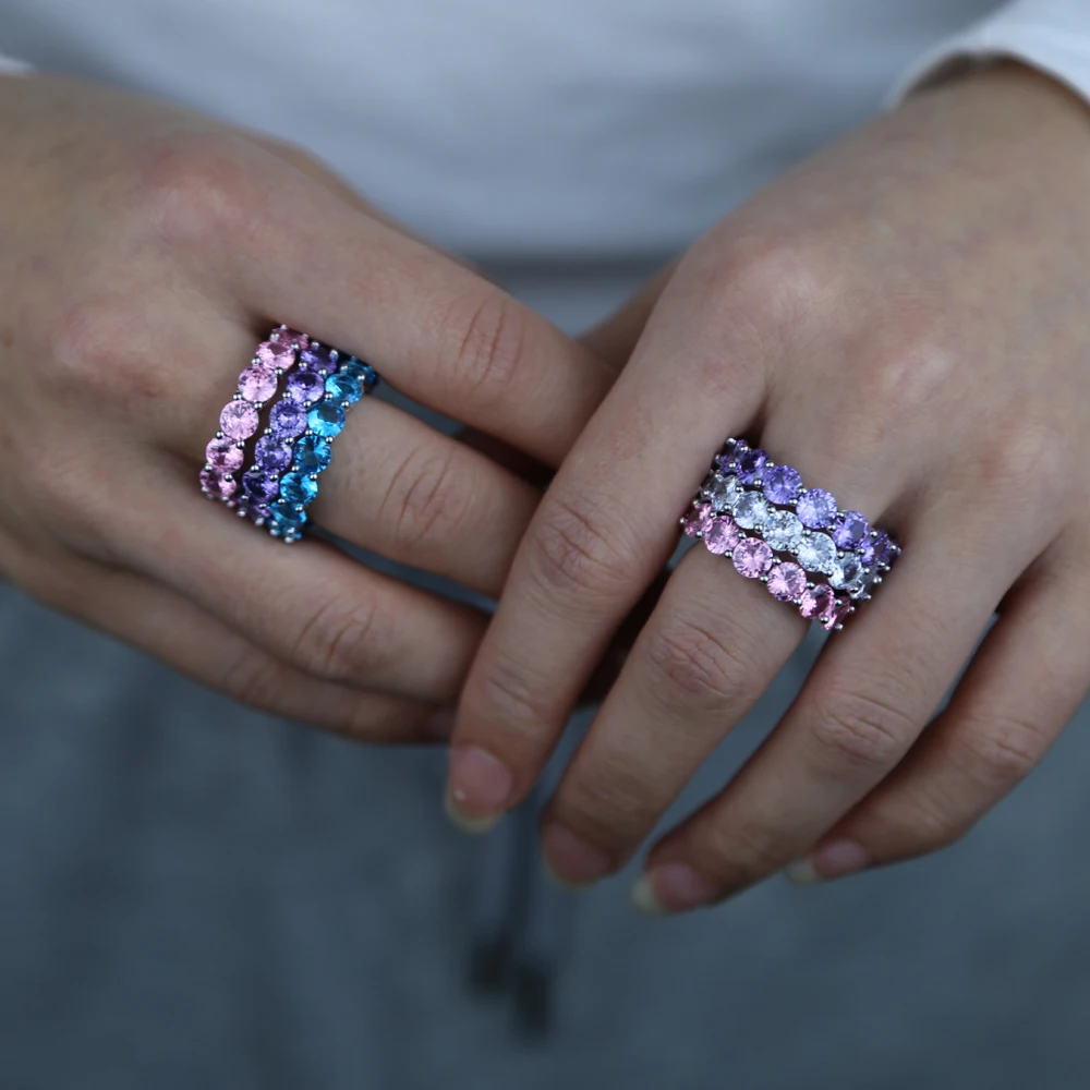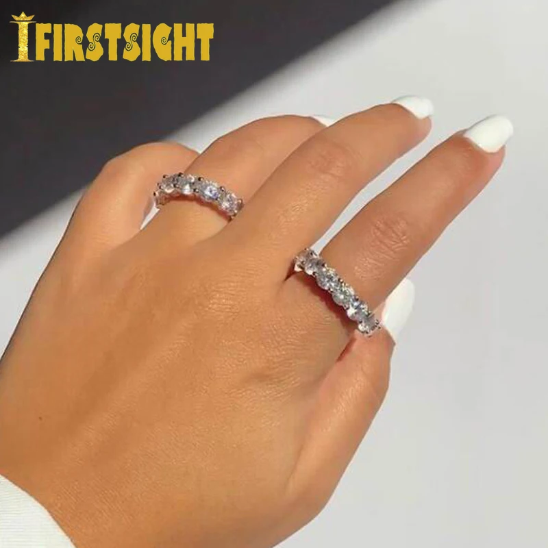 2021 Новый льдом серебро Цвет 5 мм cz Кольцо Вечности Кольцо роскошные ювелирные изделия 5A камень обещание вечерние в стиле "хип-хоп" Bling Для женщин кольцо