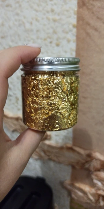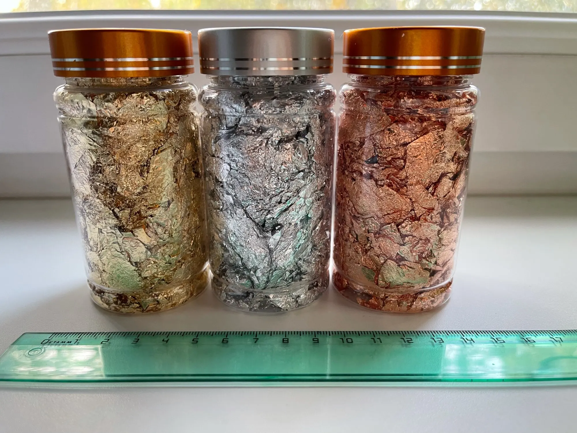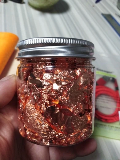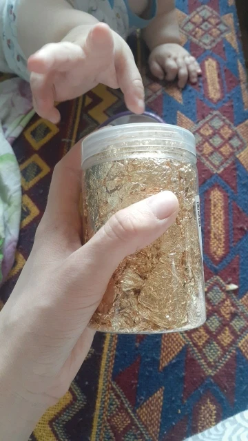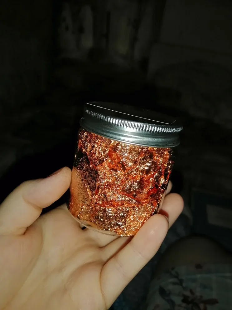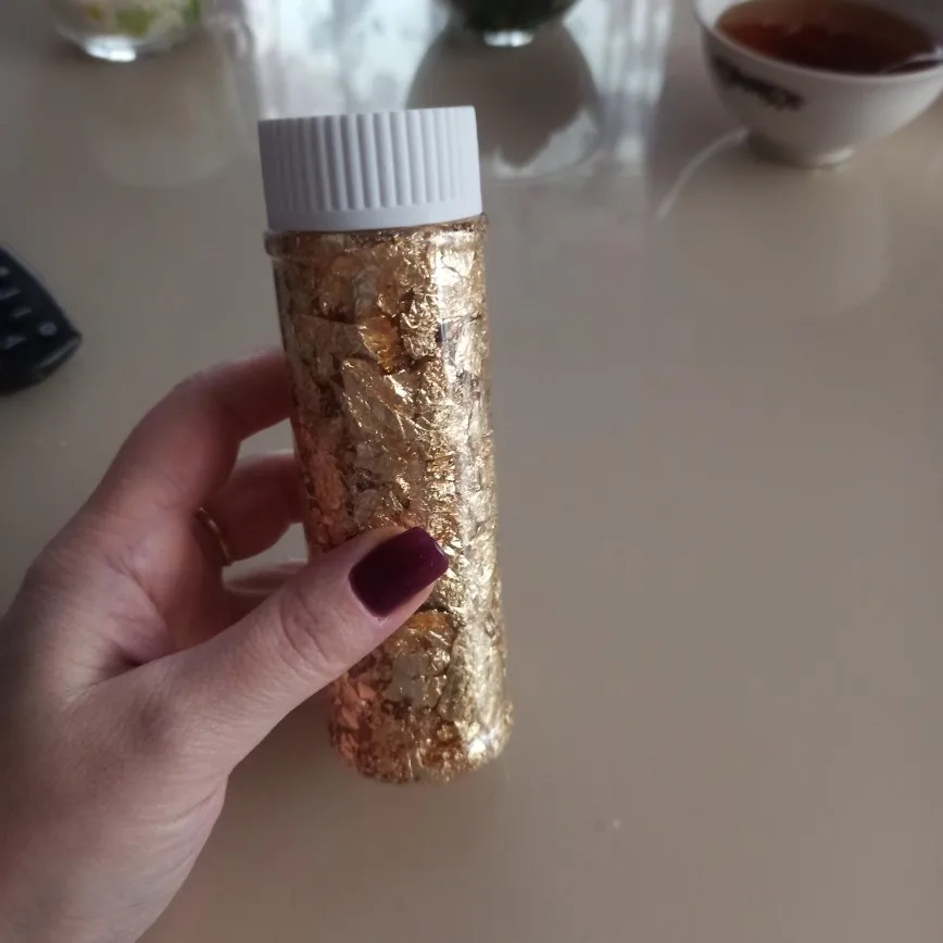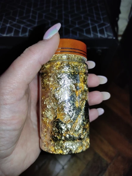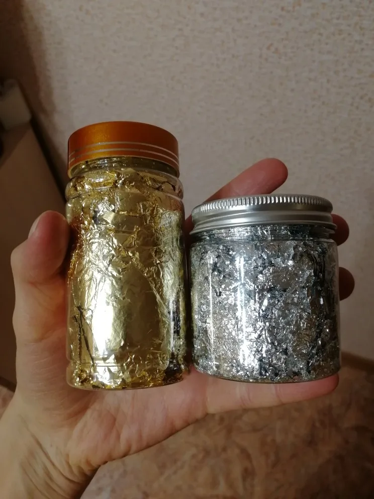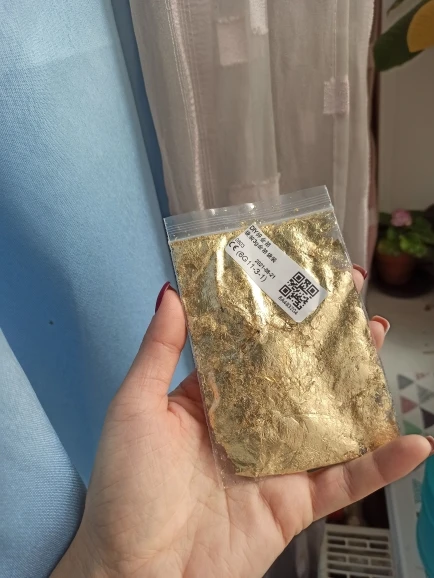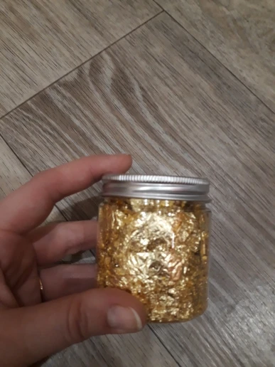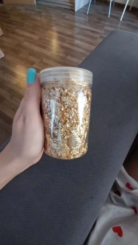 Фольга шикарная, размер баночки просто удивил, она огромная. Теперь этой фольги хватит и на ногти и на поделки, даже не знаю на сколько, на много лет. Обязательно буду брать другие цвета. Я в восторге!!! Пришла посылка быстро. Всем советую этого продавца и этот товар!