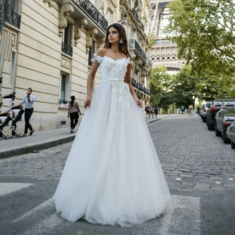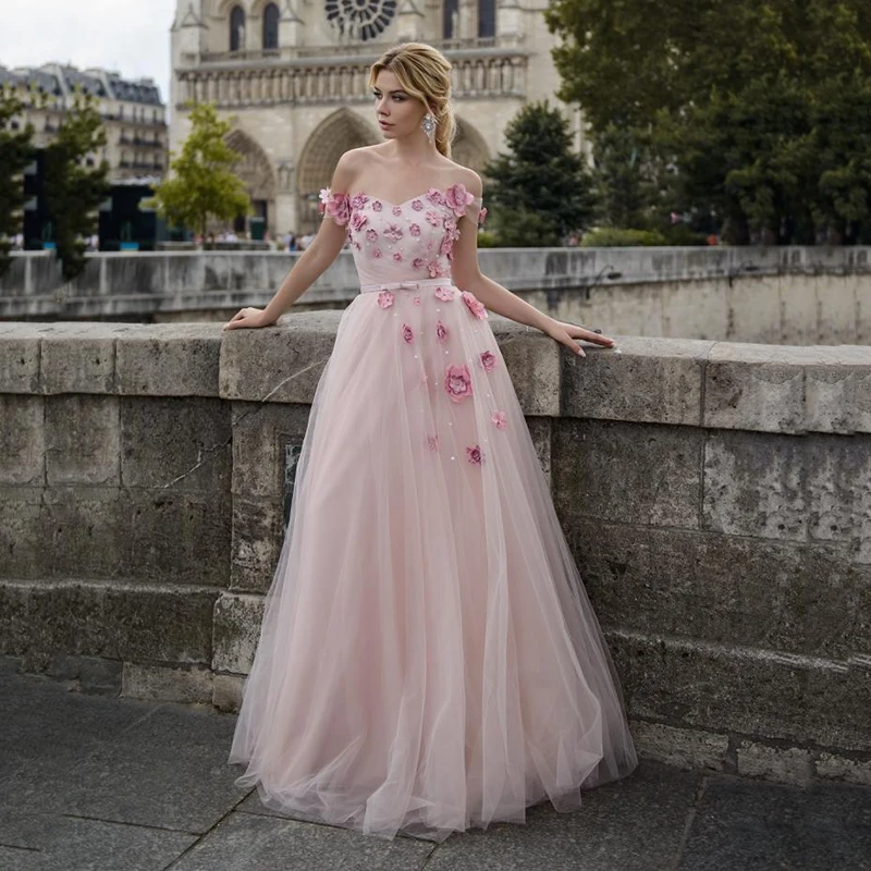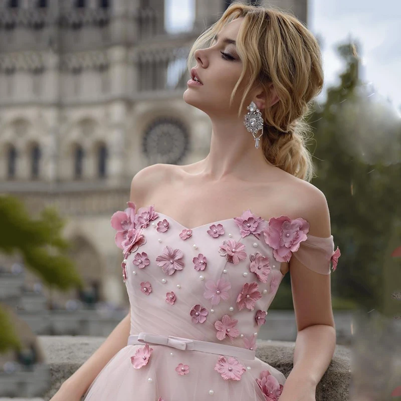UZN элегантное вечернее платье трапециевидной формы, милое атласное и фатиновое вечерние платья Украшенные бисером, с открытыми плечами, рукава с цветами ручной работы, вечерние платья