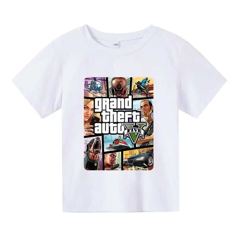 Новинка 2021 года, топы для игр Grand Theft Auto, футболка Gta 5, верхняя одежда, костюмы, детская одежда, футболки для девочек, летняя футболка с аниме для мальчиков