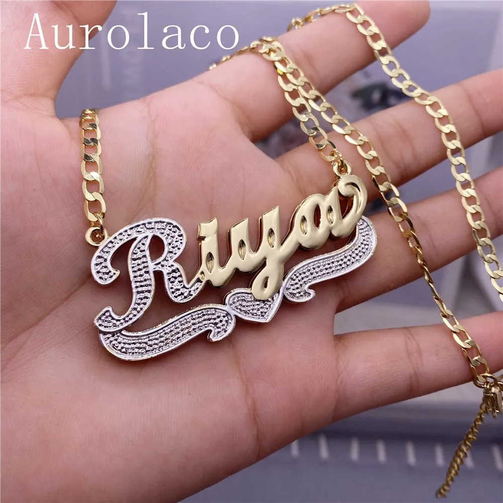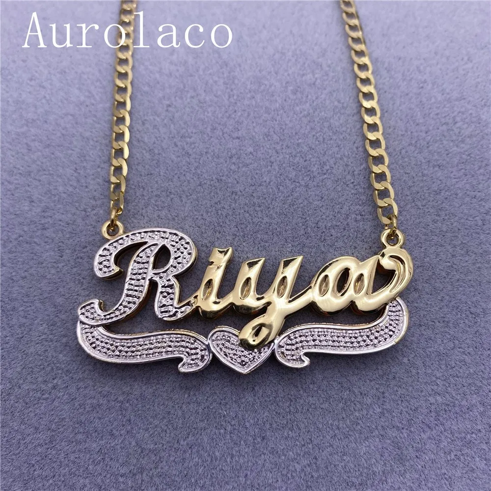 Ожерелье AurolaCo с именем на заказ с короной на заказ серебряный цвет нержавеющая сталь под сердцем 3D ожерелье с табличкой для женщин Подарки
