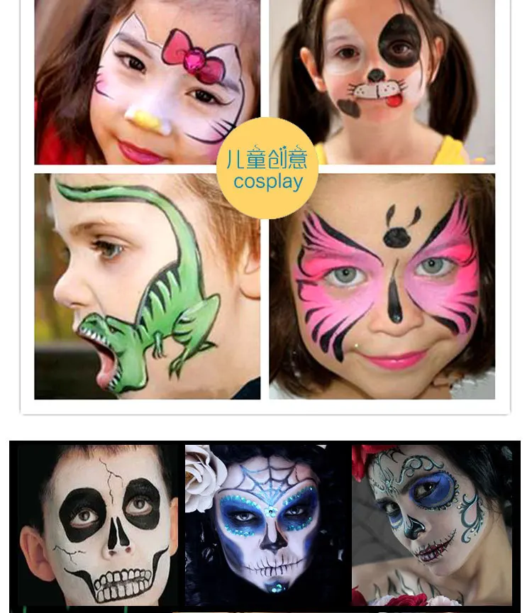 Набор для рисования лица и тела, детская безопасная мигающая татуировка, рождественвечерние, краски с кистями, макияж, акриловая краска, оптовая продажа