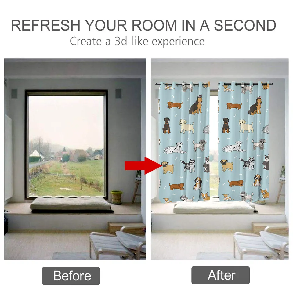 Шторы BeddingOutlet с изображением собаки, детские шторы в стиле хиппи, затемняющие шторы для спальни с изображением животных, акварельных щенков
