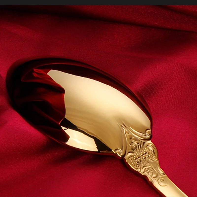 Винтажные Позолоченные столовые приборы в западном стиле, 16 шт., столовые ножи, вилки, набор чайных ложек, Золотая Роскошная Посуда, набор из набор столовых приборов с гравировкой